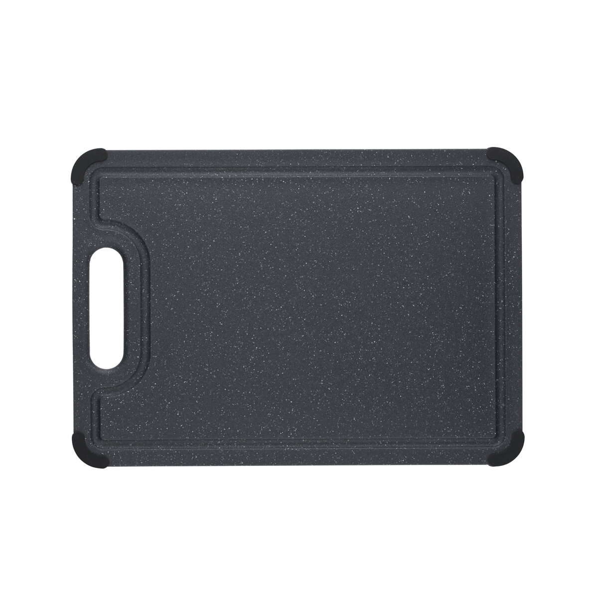 Доска разделочная GIPFEL MARMO 50423 с желобом для удержания жидкости, с силиконовыми ножками против скольжения 40,5х28,5см. Материал: пластик, силикон. Цвет доски: черный гранит, цвет ножек: черный.