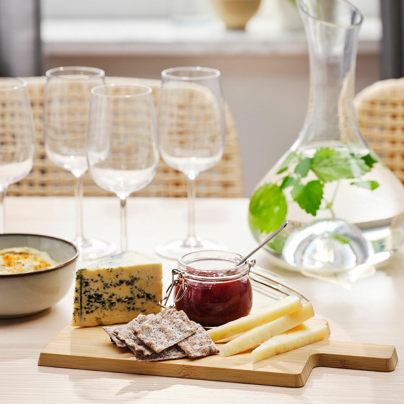 Доска изготовлена из бамбука, который является натуральным прочным материалом и бережно относится к лезвиям ножей. Можно использовать в качестве сервировочного подноса для продуктов, например, сыра или мясного ассорти. Обе стороны разделочной доски функциональны и могут использоваться для приготовления пищи. Помойте доску перед первым использованием.