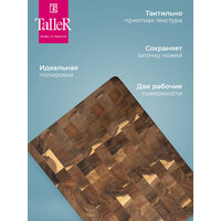 Размеры: 35 х 25 х 2,8 см. Доска выполнена из акации. Имеет две рабочие поверхности. Большая торцевая доска толщиной почти в три см. Вес доски 1,5 кг.