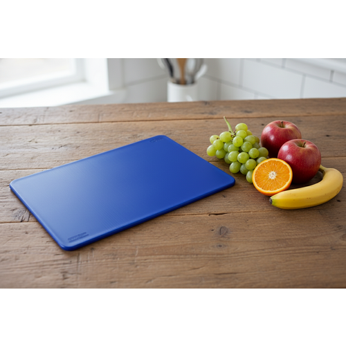 Разделочные доски из высококачественного полипропилена практичны и удобны в использовании благодаря новейшим технологиям изготовления. Нормами гигиены прописано обязательное наличие на кухне предприятия общественного питания наличие не менее 10 разделочных досок. Согласно правилам, они обязательно должны отличаться по цветам. Белые – для молока и продуктов, изготовленных из него, Зеленые – для зелени, фруктов и овощей, Синие / голубые – для рыбы и морепродуктов, Желтые – для сырой птицы, Красные – для сырого мяса, Коричневые – для вареного мяса и колбас. Использование большого числа разделочных досок позволяет обеспечить безопасность приготовления блюд. Поскольку: - предотвращает распространение инфекции через поверхность доски, - исключает контакт сырых и готовых ингредиентов, - предотвращает смешение ароматов и вкусов разных продуктов. Материал: полипропилен.
