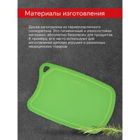 Одним из ключевых свойств данной разделочной доски является антибактериальное покрытие. Это обеспечивает гигиеничность и безопасность использования, предотвращая размножение бактерий на поверхности.