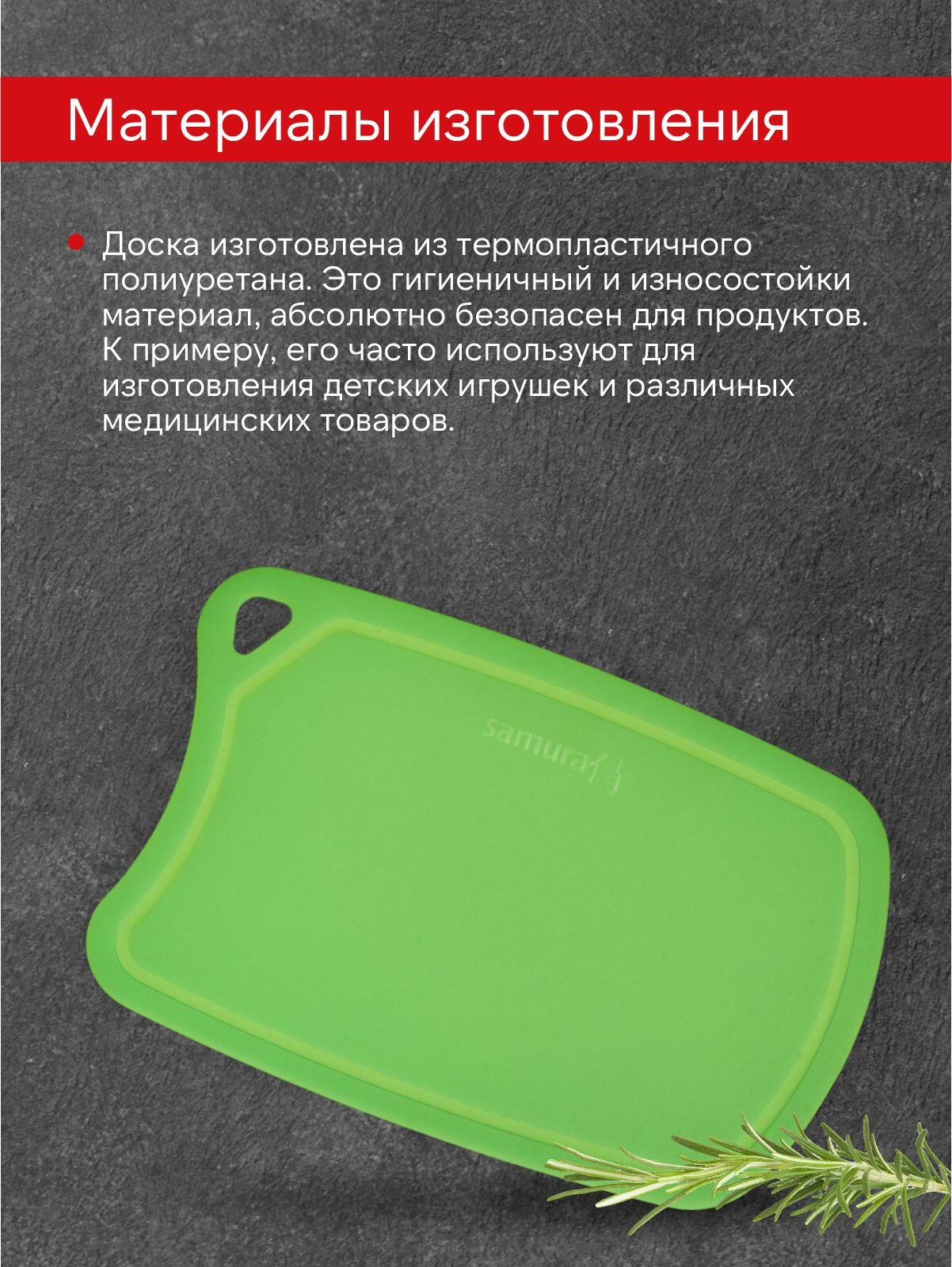 В целом, разделочная доска Samura Fusion SF-02GR - это надежный и функциональный инструмент для вашей кухни, который обеспечит безопасность и комфорт при работе с продуктами.