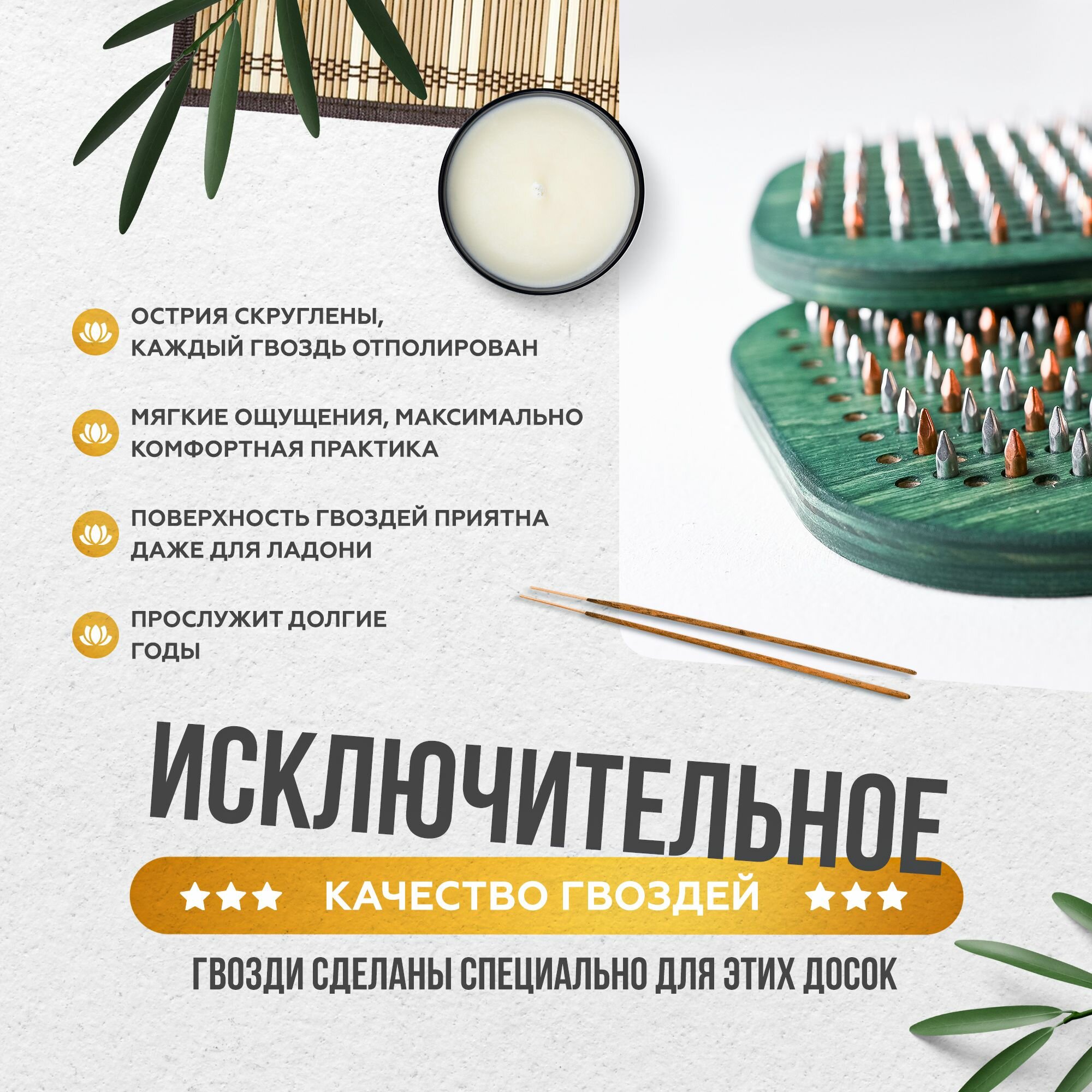 | Дополнительная информация | Набор из двух половинок досок с гвоздями Садху – 1 шт.; Чехол для доски садху - 1 шт.; Инструкция по практике стояния на гвоздях и уходу за доской для гвоздестояния – 1 шт.; Палочки благовония из Индии - 2 шт.; Аудиогиды для самостоятельной практики - 2 шт. |