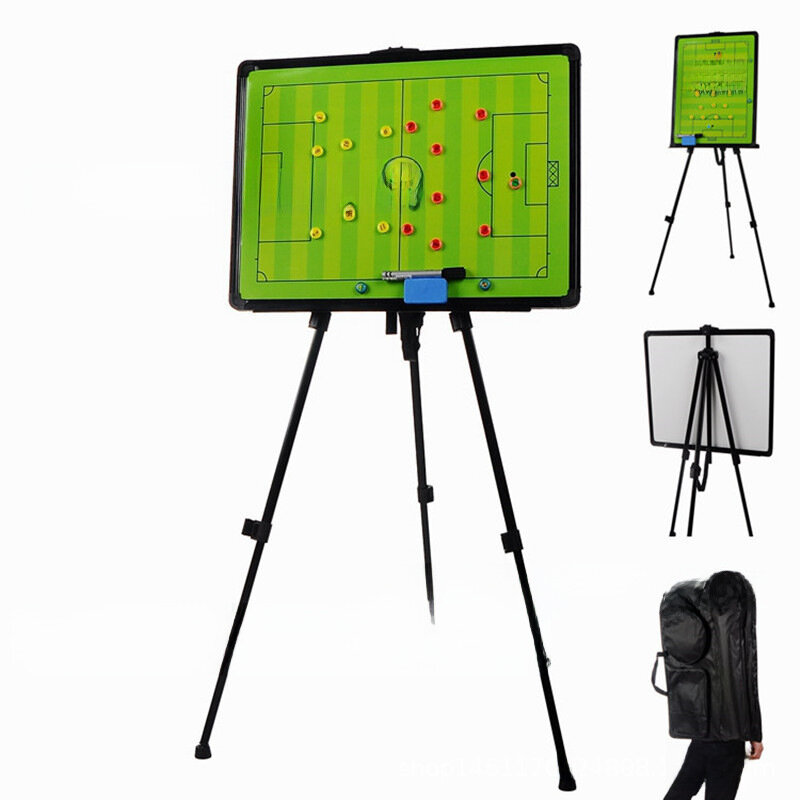 В комплекте с доской идут 26 магнитных шахматных фигур, масляная ручка, ластик, штатив, футбольный макет и портативный рюкзак. Это позволяет использовать доску не только для демонстрации тактики, но и для проведения практических занятий.