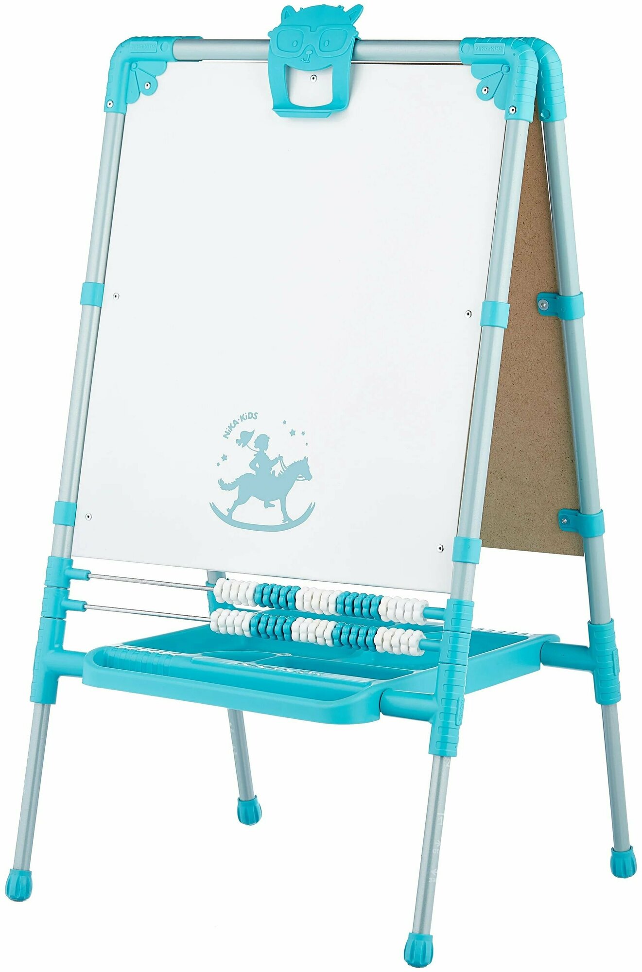 Мольберт детский для рисования двусторонний НИКА М2Р "Растущий Ретро". Мольберт предназначен для обучения и развития творческих способностей детей. Двухсторонний мольберт для детей от 1,5 лет с рисунком в стиле «Ретро» дополнит дизайн детской комнаты в нежных тонах. Оригинальный рисунок и мягкий цвет способствуют развитию чувства прекрасного в ребенке. Две рабочие поверхности: первая - для рисования мелом, вторая - для рисования маркером и магнитов. Цвет каркаса - металлик салатовый, цвет пластика - бирюзовый.