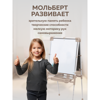 Мольберт "Растущий" Ника М2Л, хлопушка, серый, двусторонний, с магнитами и мелками