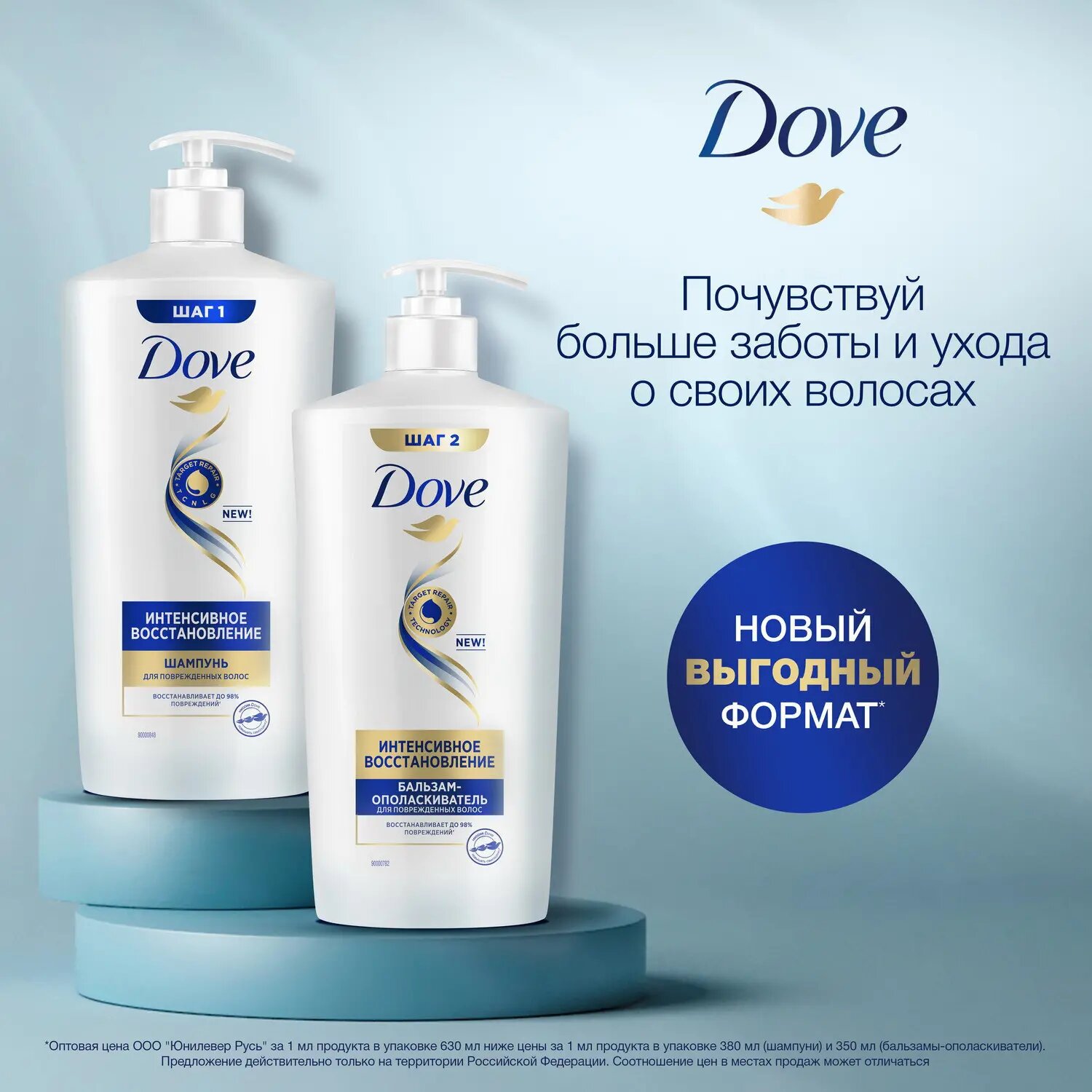 Восстанавливающий шампунь для волос поможет вернуть локонам сияющий блеск. Очищающий шампунь для волос разработан на основе технологии Target Repair, которая мгновенно определяет любые повреждения и восстанавливает до 98%' из них. Шампунь Дав Интенсивное восстановление подходит для поврежденных, секущихся и ломких волос. Молекулы Fibre Repair Actives, входящие в состав средства, проникают