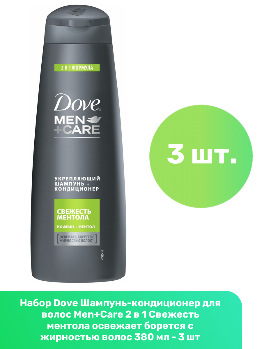 Dove Шампунь-кондиционер для волос Men+Care 2 в 1 Свежесть ментола освежает борется с жирностью волос 380 мл — 3 шт: сравнение цен, характеристики, фото, актуальное наличие и цены.