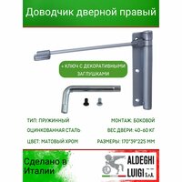 Доводчик дверной ALDEGHI LUIGI SpA правый, 170х39х225 мм, матовый хром, к-т: 1 шт + ключ с декоративными заглушками: сравнение цен, характеристики, фото, актуальное наличие и цены.