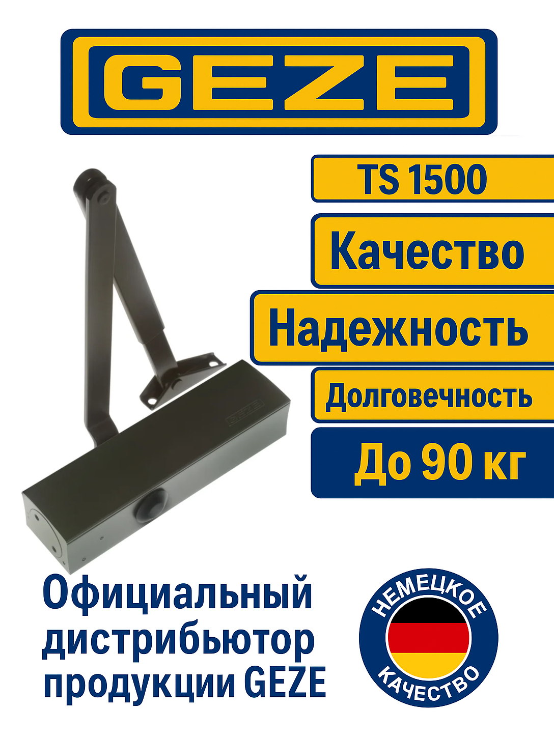Доводчик дверной GEZE TS 1500, верхний монтаж, ширина двери до 1100 мм, 90кг, Коричневый (темная бронза): сравнение цен, характеристики, фото, актуальное наличие и цены.