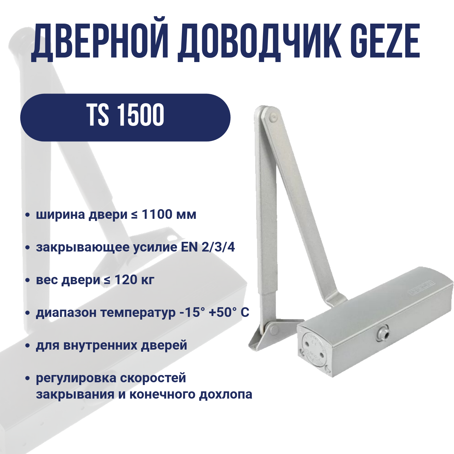 Купить Доводчик дверной GEZE TS 1500, серебристый, верхний монтаж, рычажная тяга с доставкой по всей России. Доводчик дверной GEZE TS 1500, серебристый, верхний монтаж, рычажная тяга: сравнение цен, характеристики, фото, актуальное наличие и цены.