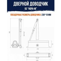 Доводчик для плавного закрывания дверей и калиток весом от 120 до 160 кг. Универсальный, морозостойкий, работает при температурах от -45 до +60˚С. Скорость закрывания двери регулируется при установке в двух диапазонах при помощи винтов на корпусе доводчика. Шаблон для установки и инструкция - в комплекте к каждому доводчику. Сертифицирован на соответствие ГОСТ. Сертифицирован для установки на противопожарные/противодымные двери. Рабочий ресурс не менее 1 млн рабочих циклов. Класс EN5-6. В комплекте 2 вида крепежа - для установки на деревянные/пластиковые двери, и для установки на металлические двери. Гарантия 5 лет.