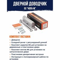 Доводчик для плавного закрывания дверей и калиток весом от 120 до 160 кг. Универсальный, морозостойкий, работает при температурах от -45 до +60˚С. Скорость закрывания двери регулируется при установке в двух диапазонах при помощи винтов на корпусе доводчика. Шаблон для установки и инструкция - в комплекте к каждому доводчику. Сертифицирован на соответствие ГОСТ. Сертифицирован для установки на противопожарные/противодымные двери. Рабочий ресурс не менее 1 млн рабочих циклов. Класс EN5-6. В комплекте 2 вида крепежа - для установки на деревянные/пластиковые двери, и для установки на металлические двери. Гарантия 5 лет.