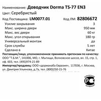 Купить Доводчик DORMA TS-77 EN 3 (до 100 кг) серебро с доставкой по всей России. Доводчик DORMA TS-77 EN 3 (до 100 кг) серебро: сравнение цен, характеристики, фото, актуальное наличие и цены.