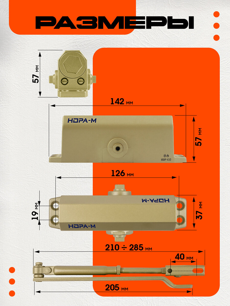 Доводчик дверной уличный Нора-М Isparus 410 (морозостойкий для дверей 15-60кг) — Золото: сравнение цен, характеристики, фото, актуальное наличие и цены.