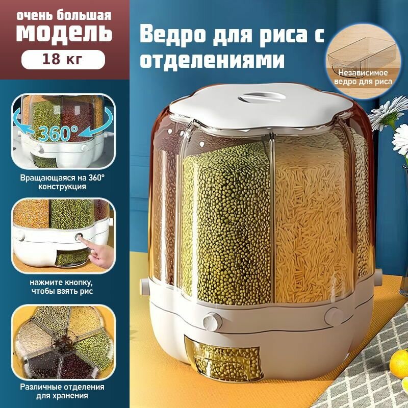 Диспенсер для круп и сыпучих продуктов, 6 отделений, вместимость 9 кг, цвет белый: сравнение цен, характеристики, фото, актуальное наличие и цены.