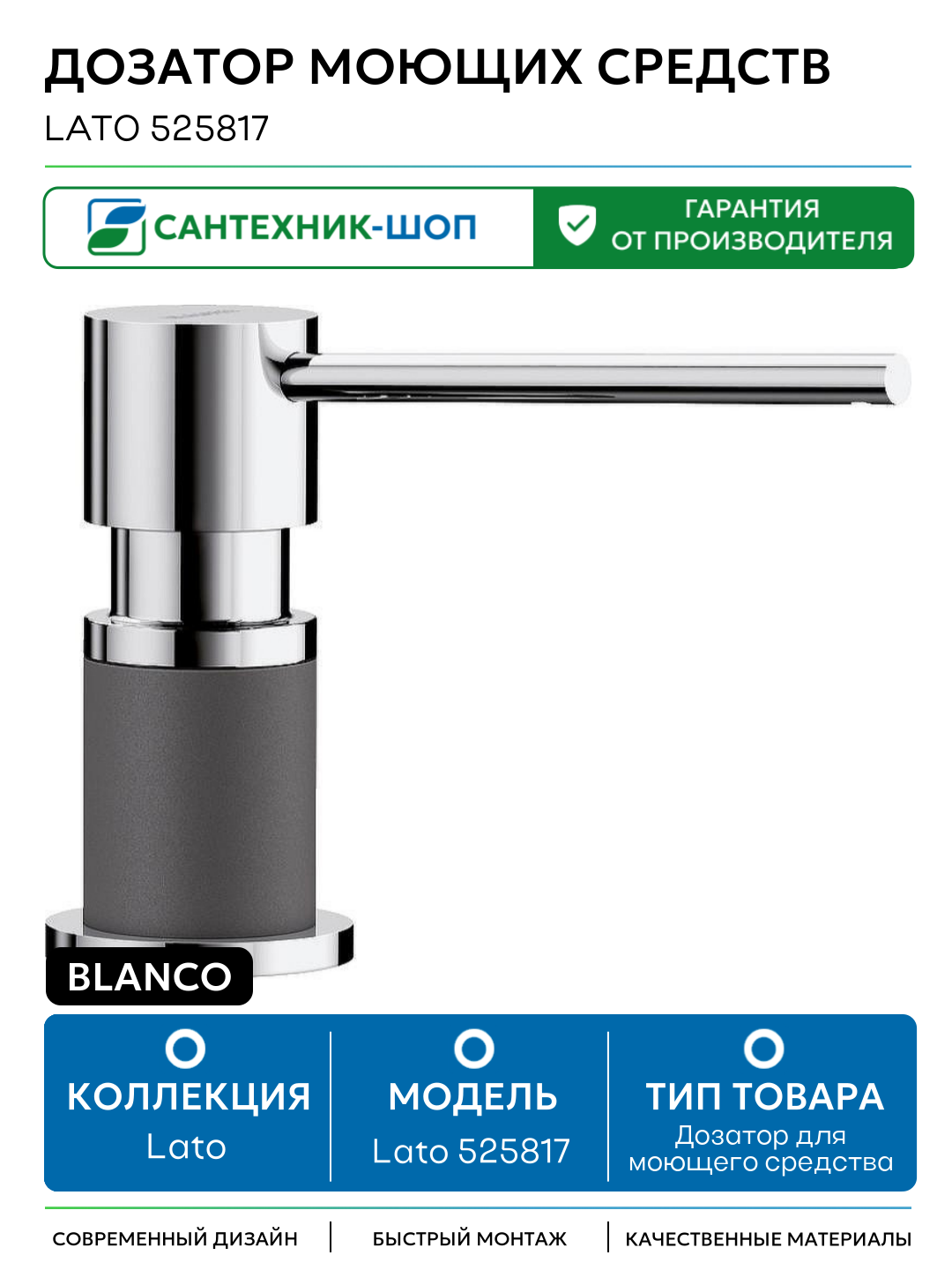 Купить Дозатор для моющего средства Blanco Lato 525817 Хром Темная скала с доставкой по всей России. Дозатор для моющего средства Blanco Lato 525817 Хром Темная скала: сравнение цен, характеристики, фото, актуальное наличие и цены.