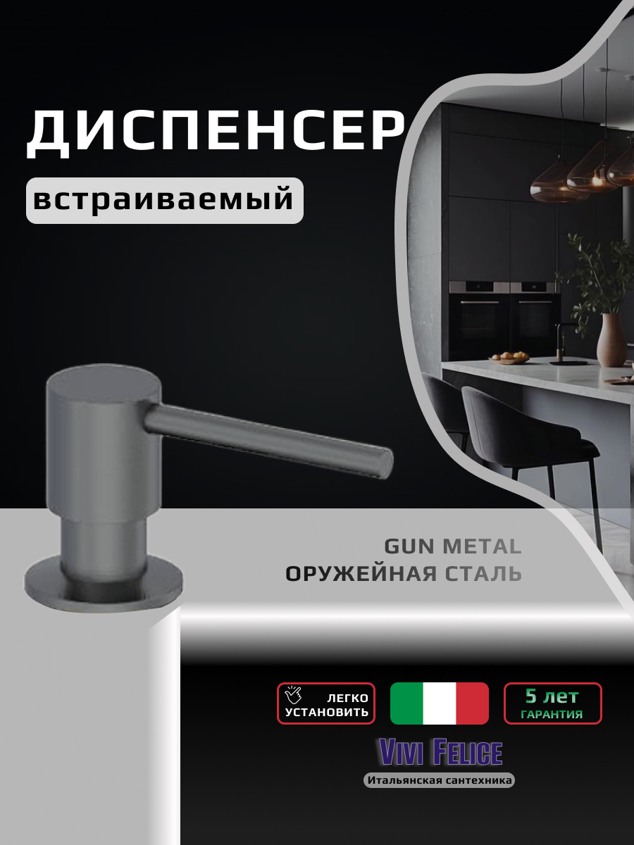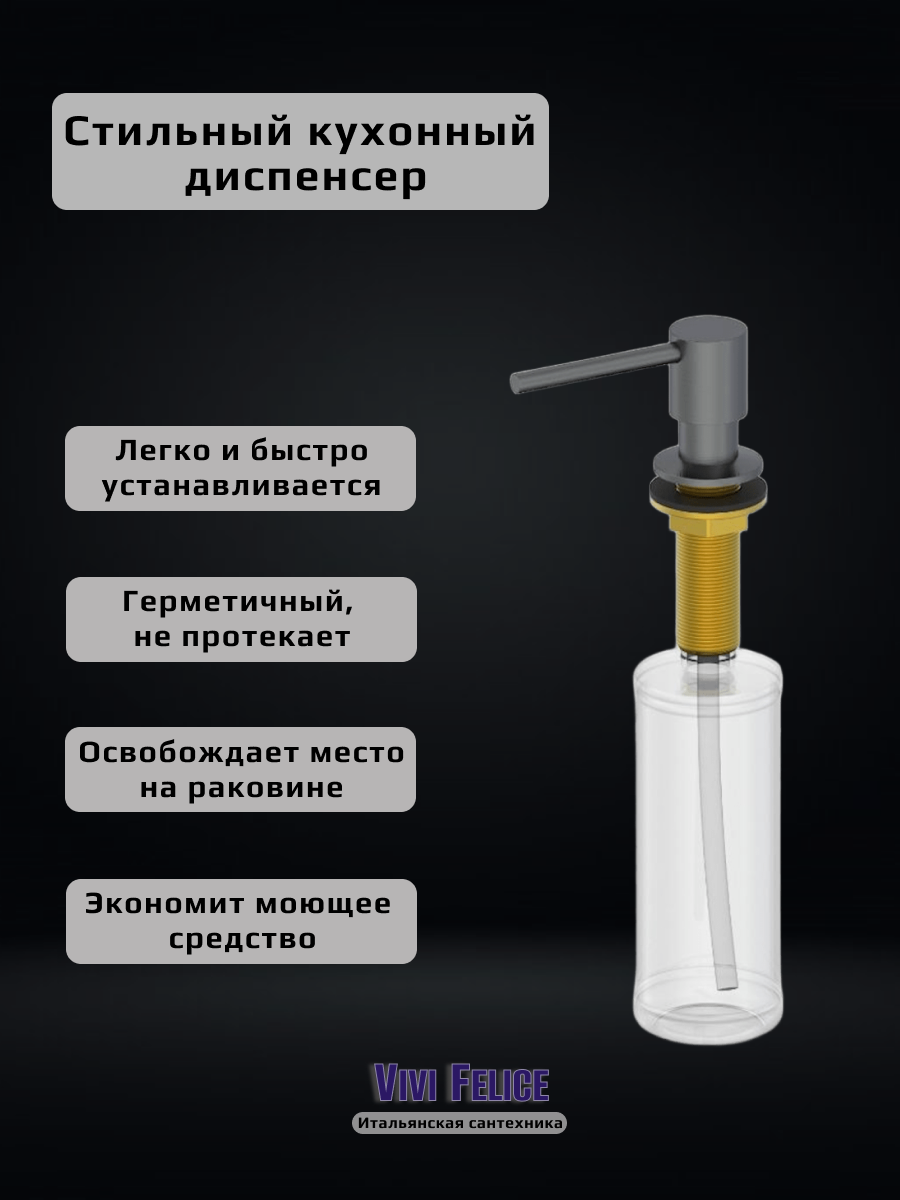 Дозатор для моющего средства на кухню Vivi Felice, латунь, 300мл, оружейная сталь: сравнение цен, характеристики, фото, актуальное наличие и цены.