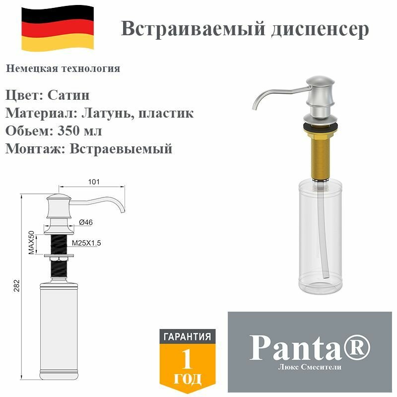 Купить Дозатор для моющего средства на кухню встраиваемый, диспенсер для жидкого мыла Panta PT-SD03-BN сатин с доставкой по всей России. Дозатор для моющего средства на кухню встраиваемый, диспенсер для жидкого мыла Panta PT-SD03-BN сатин: сравнение цен, характеристики, фото, актуальное наличие и цены.