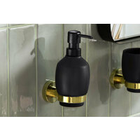 Настенный дозатор для жидкого мыла Oro Nero изготовлен из керамики и покрыт черной матовой краской. Держатель изготовлен из сплава цинка с брашированным покрытием цвета золота. На предмете почти не остается следов от пальцев, разводов от воды. Является частью коллекции Oro Nero, которая представлена в Likemyhome в полном составе. Предметы коллекции дополнят деталями темные ванные или станут контрастными акцентами в светлых и цветных. Идеально сочетаются с сантехникой в теплых оттенках металла, а также санфаянсом, мебелью и отделкой в темных тонах. Протирать с помощью мыльного раствора мягкой тряпкой. Не рекомендуется использовать абразивные и химически активные вещества для ухода за изделием. Не класть в морозильник, посудомоечную машину, микроволновую печь. Матовая поверхность колбы Носик из пластика Тип крепления: на шурупы Крепления в комплекте Состав металла: сплав цинка Скрытое крепление Покрытие металла гальваникой для защиты от коррозии Покрытие в технике браширования