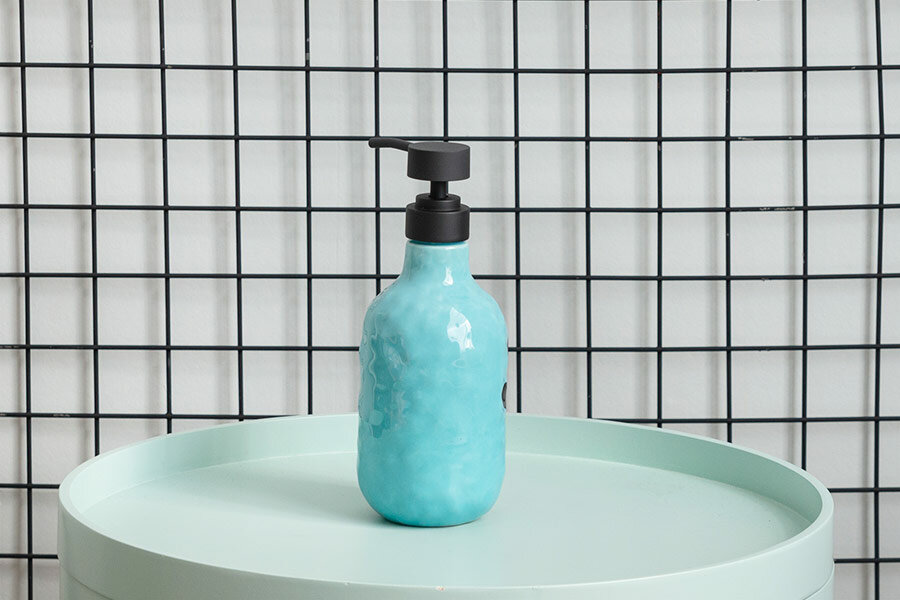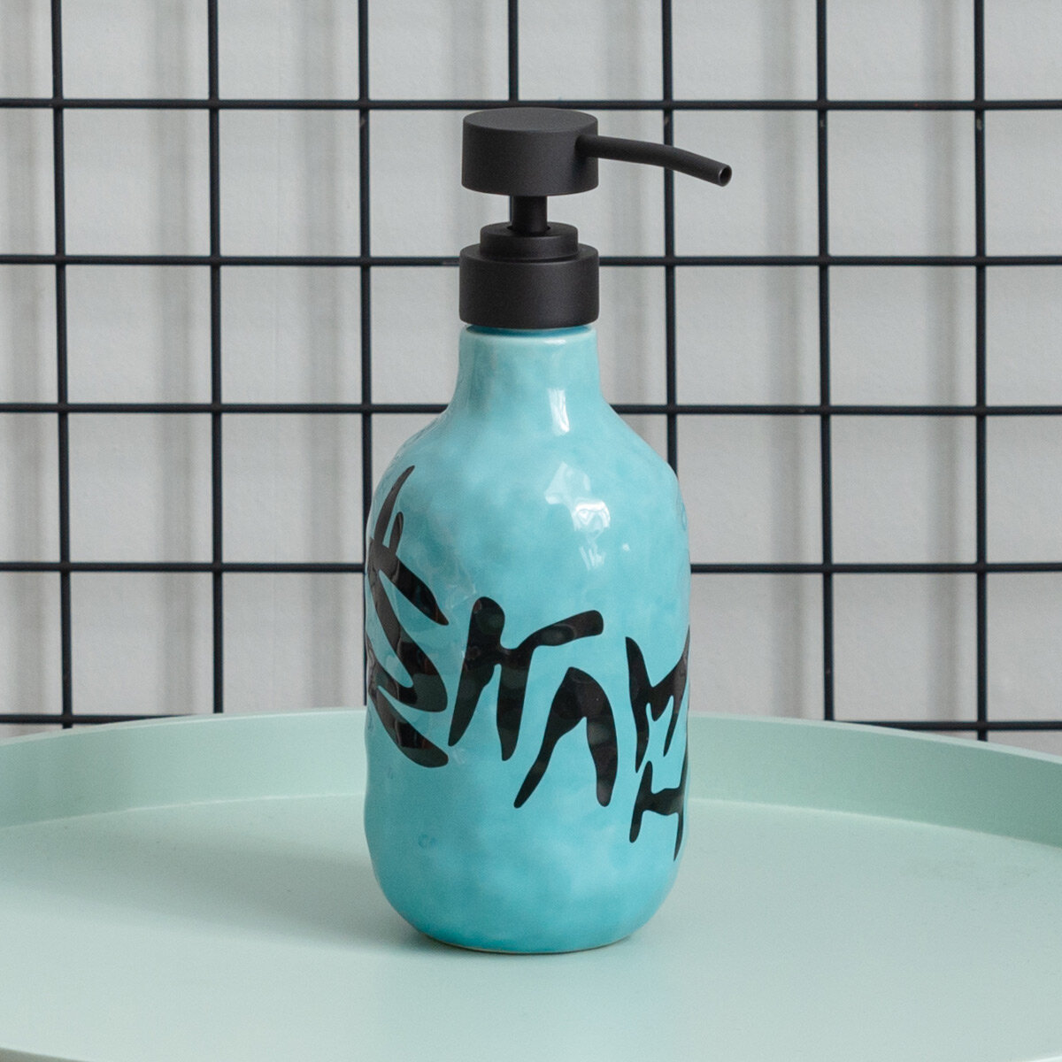 Дозатор для жидкого мыла 400 мл Irony на столешницу или раковину в ванной является собственной разработкой Likemyhome в коллаборации с Moroshka. Цвет бирюзовый, ругательство русское — «ёклмн». Поверхность колбы имеет причудливую бугристость, словно вылеплена вручную. Металлический носик дозатора имеет покрытие софт тач (Soft Touch), которое создает матовую, резиновую фактуру. Вся коллекция Irony выполнена в стилистике doodle. Это те самые бессознательные рисунки, которые непроизвольно рисуем на бумаге, когда наше сознание занято другими вещами. Протирать с помощью мыльного раствора мягкой тряпкой. Не рекомендуется использовать абразивные и химически активные вещества для ухода за изделием. Не класть в морозильник, посудомоечную машину, микроволновую печь. Покрытие: глянцевая глазурь Печатный деколь Носик из металла с покрытием софт тач Цвет носика черный Рельефная поверхность предмета