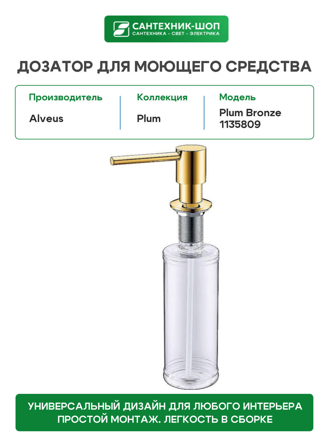 Дозатор для мыла ALVEUS PLUM 0,5L BRONZE — стильное и надежное решение для вашей ванной комнаты. Этот встраиваемый дозатор для жидкого мыла идеально впишется в любой интерьер, придавая ему элегантности и удобства. Благодаря бронзовому оттенку, аксессуар выглядит изысканно и гармонирует с другими элементами декора.