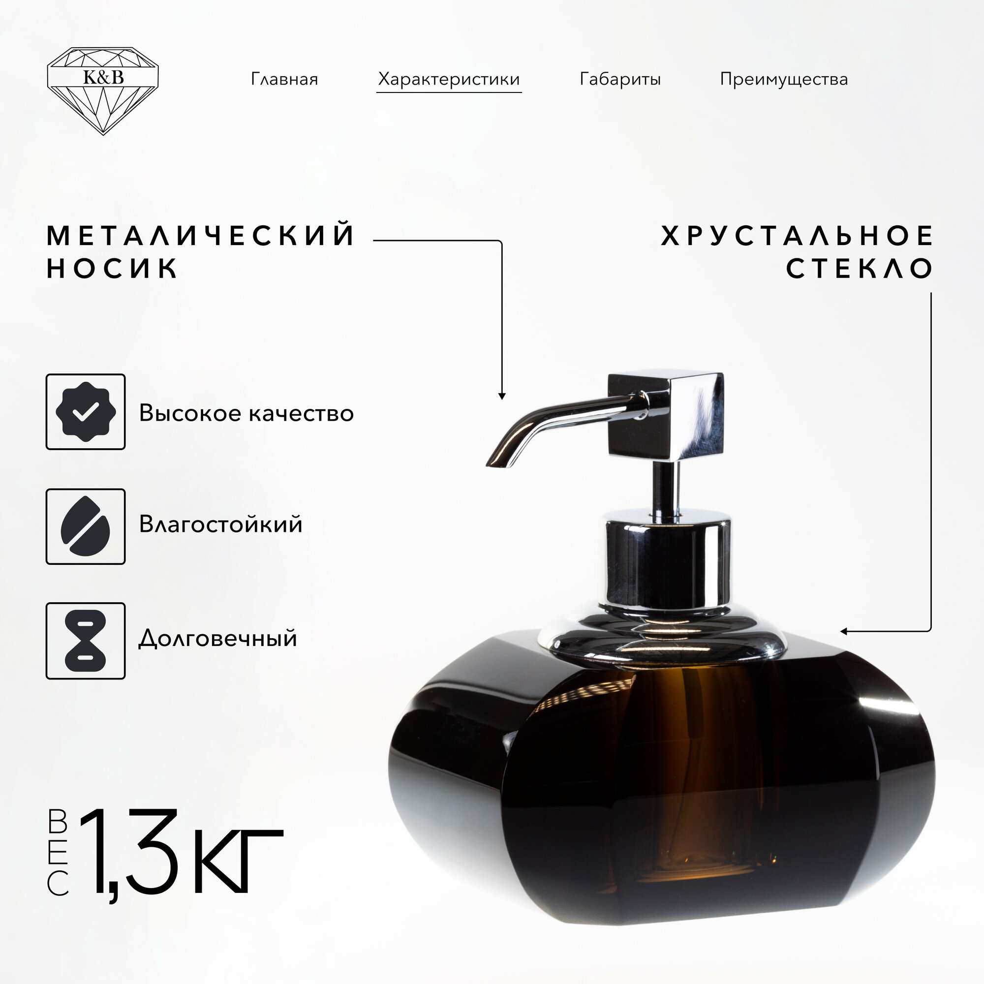 Купить Дозатор для мыла К&B, настольный, цвет: хрусталь коричневый / хром с доставкой по всей России. Дозатор для мыла К&B, настольный, цвет: хрусталь коричневый / хром: сравнение цен, характеристики, фото, актуальное наличие и цены.