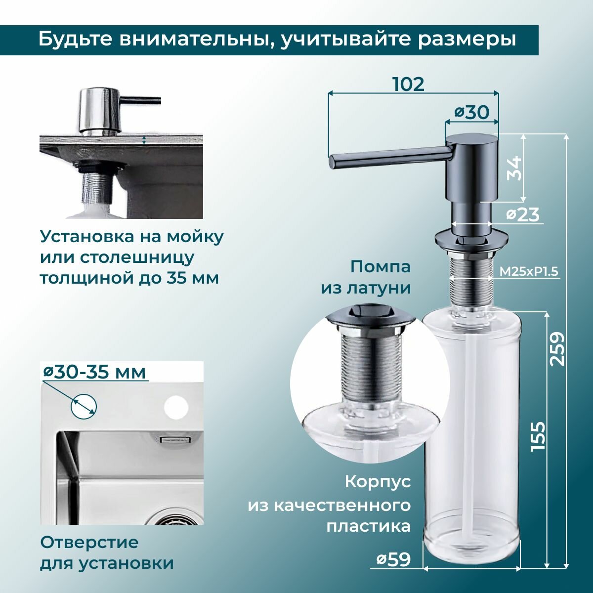 Дозатор для моющего средства, жидкого мыла встраемый в мойку, на кухню и в ванную Alveus PLUM 500 мл ANTHRACITE. Цвет антрацит: сравнение цен, характеристики, фото, актуальное наличие и цены.
