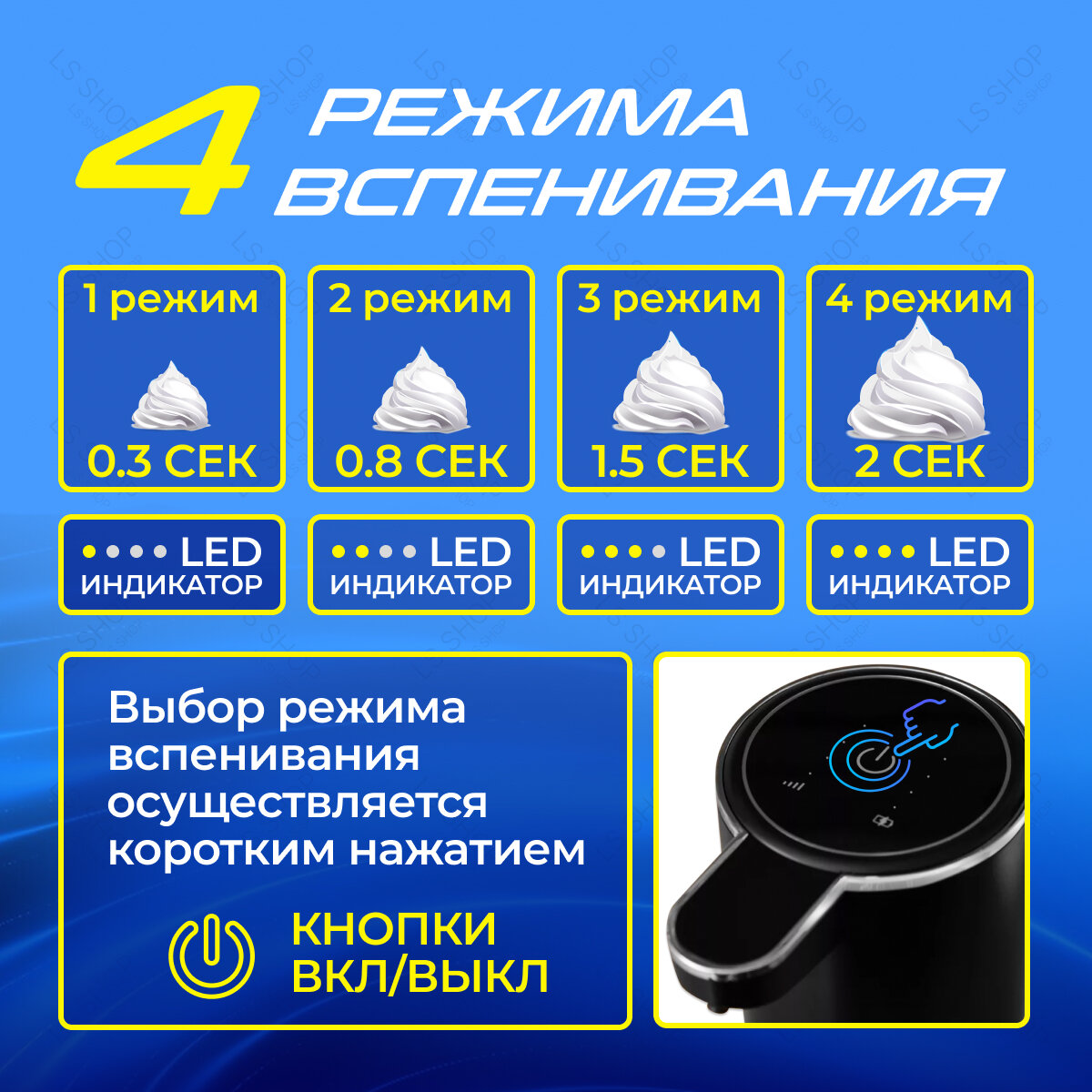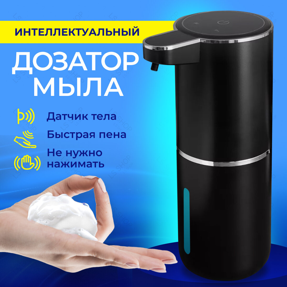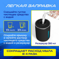 Диспенсер для жидкого мыла сенсорный Сенсорный дозатор для мыла - это интересный гаджет и незаменимая вещь для Вашего дома! Неоспоримым преимуществом данного дозатора является бесконтактная подача пены. Он позволяет удобно использовать необходимое количество жидкого мыла, экономя при этом его потребление и обеспечивая гигиеничность использования. Заряжается от USB провода и автономно работает до 3х месяцев, в зависимости от интенсивности использования. Разъем имеет защиту от воды. Дозаторы для мыла могут быть использованы как в ванной комнате, так и на кухне. Сенсорный диспенсер лёгок в управлении. Имеет индикатор заряда и 4 режима настройки по объему мыльной пены. Заправляется жидким мылом с водой в пропорции 1:3, 1/4 жидкого мыла и 3/4 воды. Все, что вам останется - перемешать получившуюся смесь, залить в дозатор и включить его. В современной жизни аксессуары для дома стали неотъемлемой частью уюта интерьера. Они не только облегчают повседневную жизнь, но и придают дому стиль и индивидуальность. Одним из таких полезных и популярных аксессуаров является автоматический диспенсер для жидкого мыла. Дозатор для моющего средства отлично впишется в интерьер кухни, делая ее более организованной и функциональной. Диспенсер можно повесить на стену на самоклеящиеся крючки, которые идут в комплекте, или оставить на поверхности.