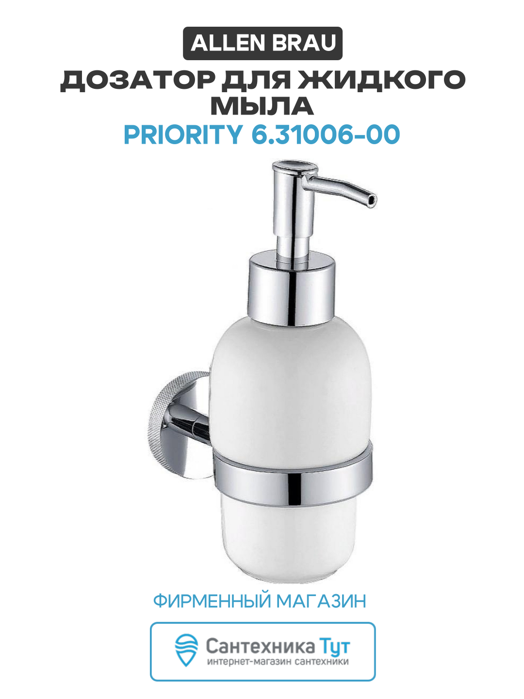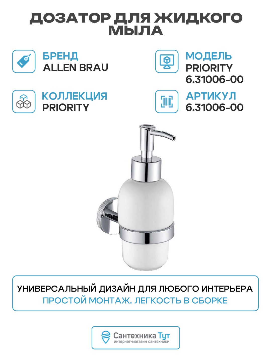 Купить Дозатор для жидкого мыла Allen Brau Priority 6.31006-00 Белый Хром керамика на стену с доставкой по всей России. Дозатор для жидкого мыла Allen Brau Priority 6.31006-00 Белый Хром керамика на стену: сравнение цен, характеристики, фото, актуальное наличие и цены.