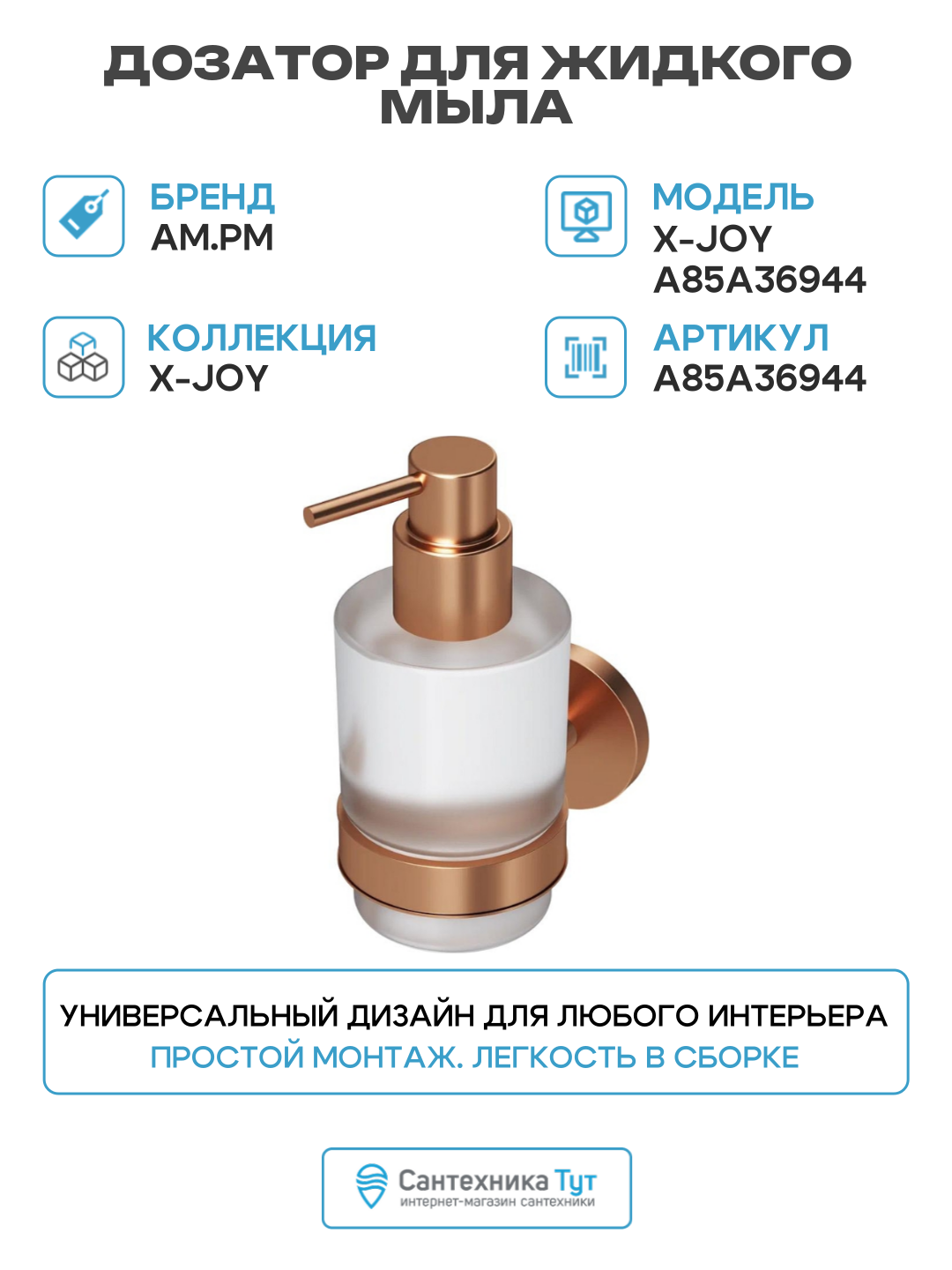 Дозатор для жидкого мыла AM.PM X-Joy A85A36944 Розовое золото, современный стиль: сравнение цен, характеристики, фото, актуальное наличие и цены.