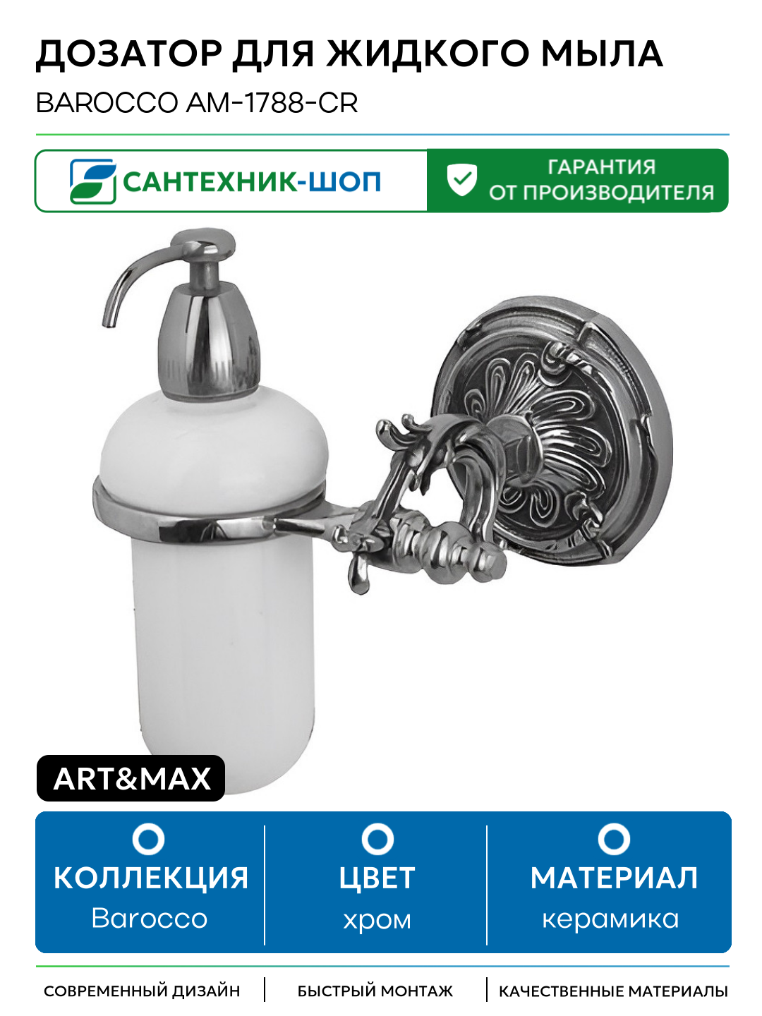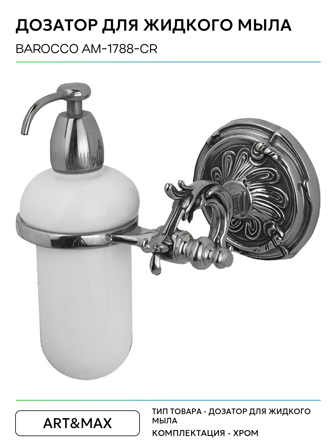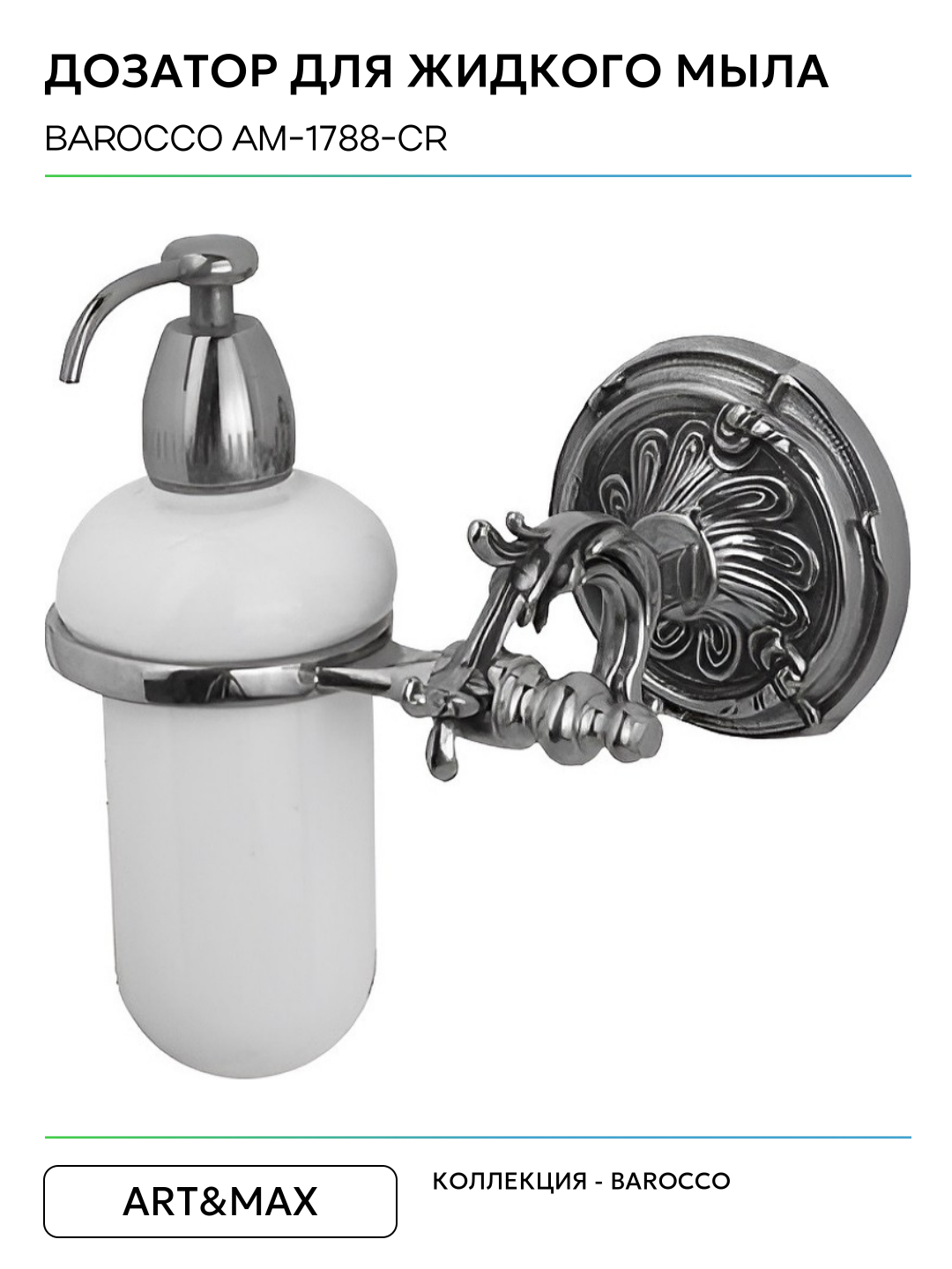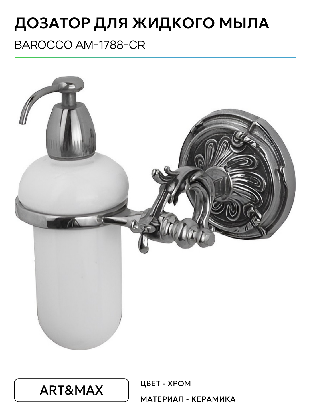 Дозатор для жидкого мыла Art&Max Barocco AM-1788-Cr Хром керамика на стену: сравнение цен, характеристики, фото, актуальное наличие и цены.