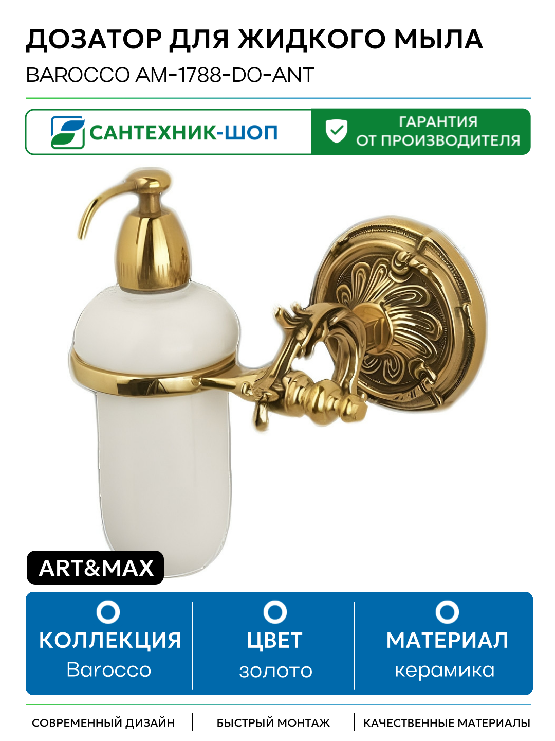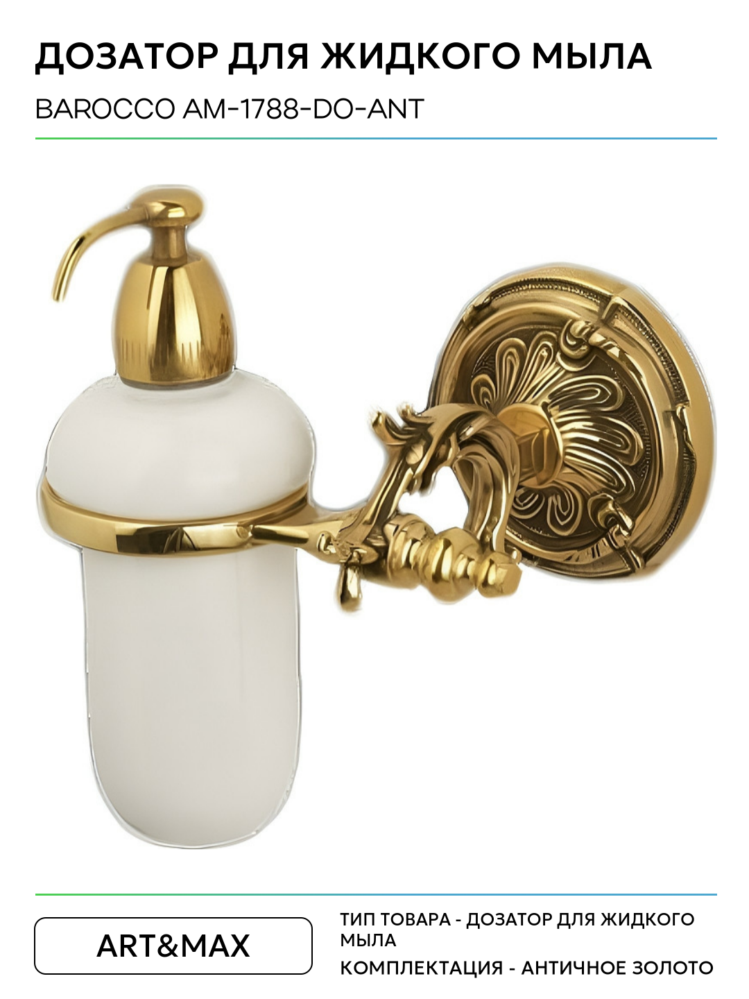 Дозатор для жидкого мыла Art&Max Barocco AM-1788-Do-Ant Античное золото керамика на стену: сравнение цен, характеристики, фото, актуальное наличие и цены.