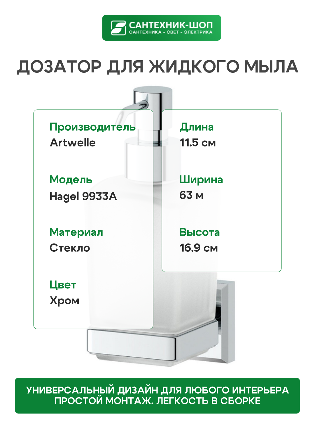 Дозатор для жидкого мыла Artwelle Hagel 9933A Хром стекло на стену: сравнение цен, характеристики, фото, актуальное наличие и цены.