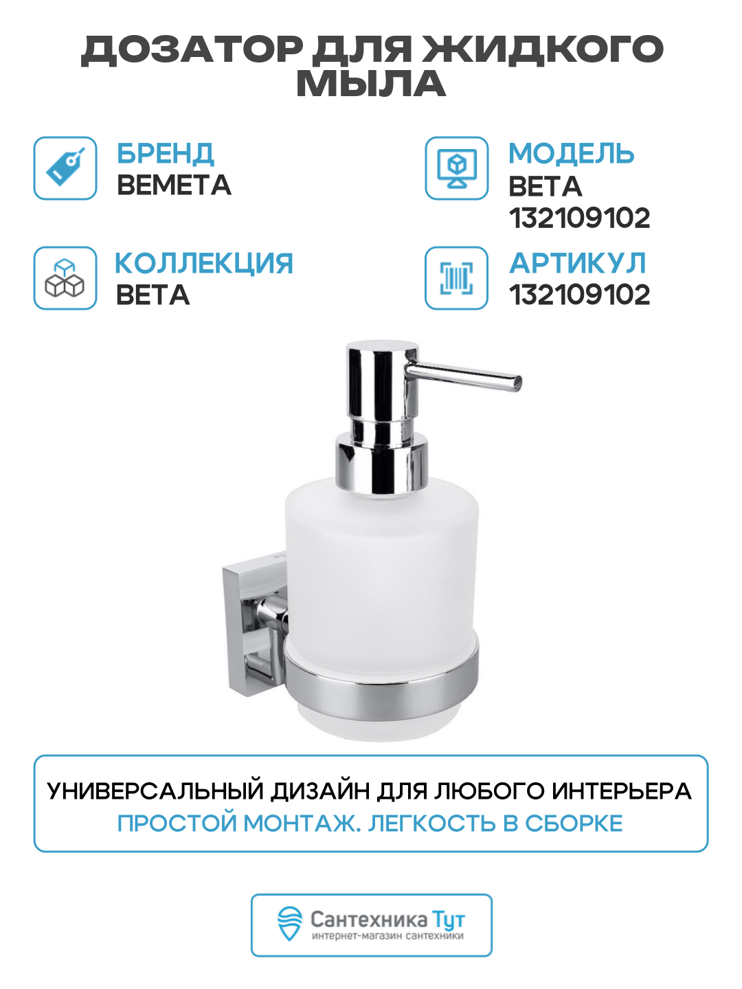 Дозатор для жидкого мыла Bemeta Beta 132109102 Хром стекло на стену: сравнение цен, характеристики, фото, актуальное наличие и цены.
