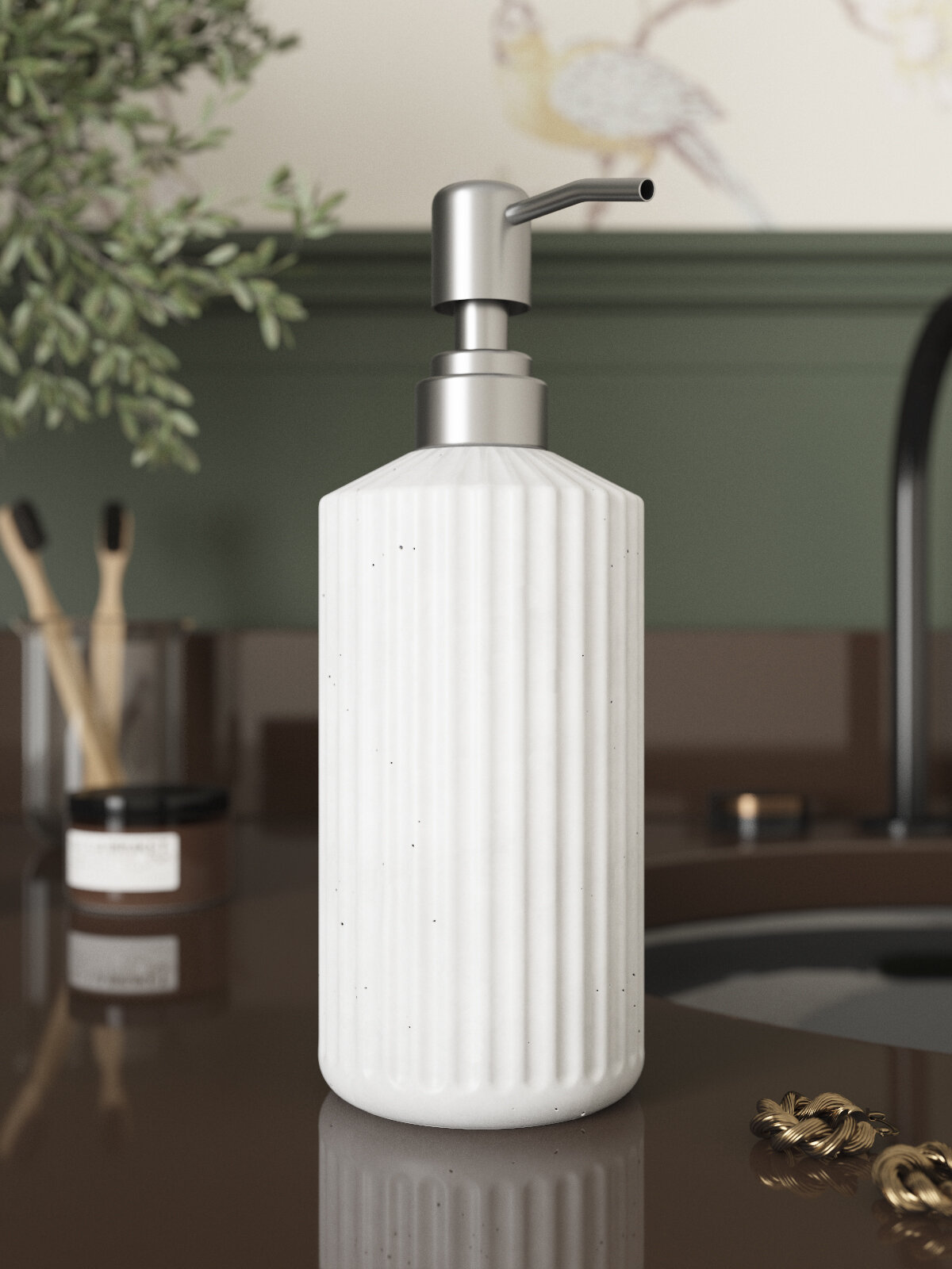 Дозатор для жидкого мыла Chloe Slim с металлической хромовой помпой 250 мл, бетон, белый глянцевый: сравнение цен, характеристики, фото, актуальное наличие и цены.