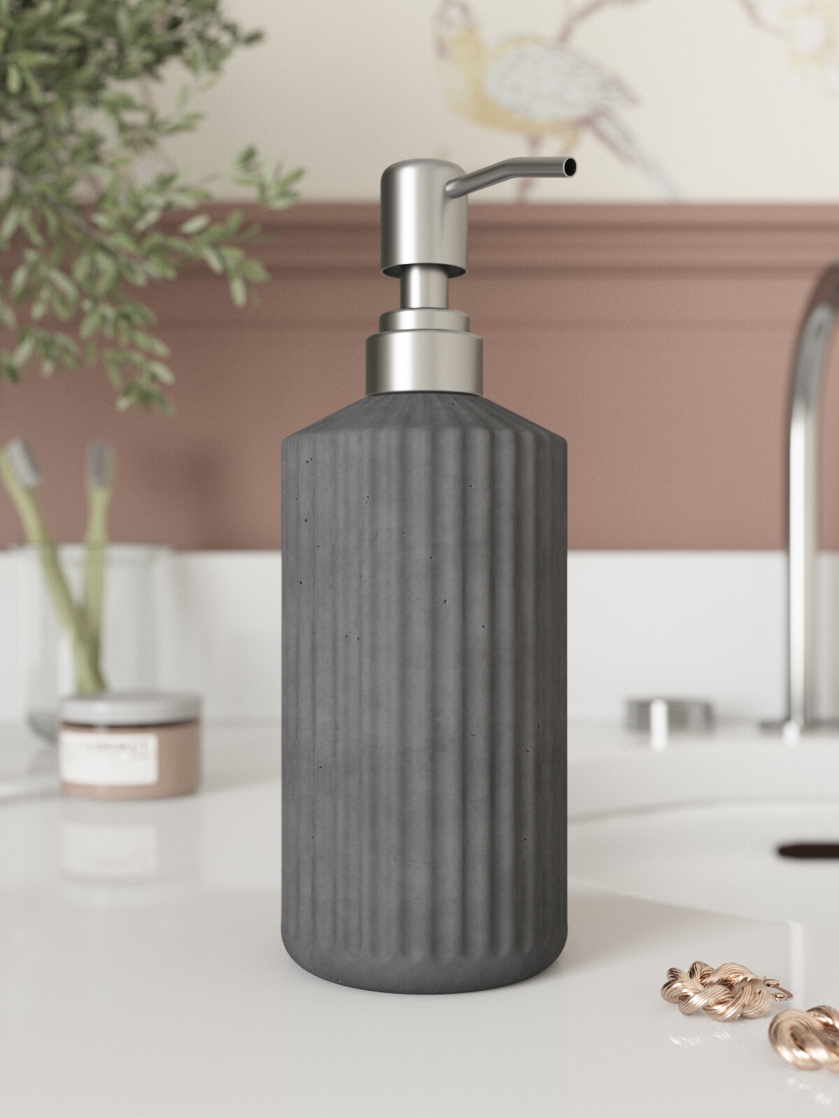 Дозатор для жидкого мыла Chloe Slim с металлической хромовой помпой 250 мл, бетон, черный матовый: сравнение цен, характеристики, фото, актуальное наличие и цены.