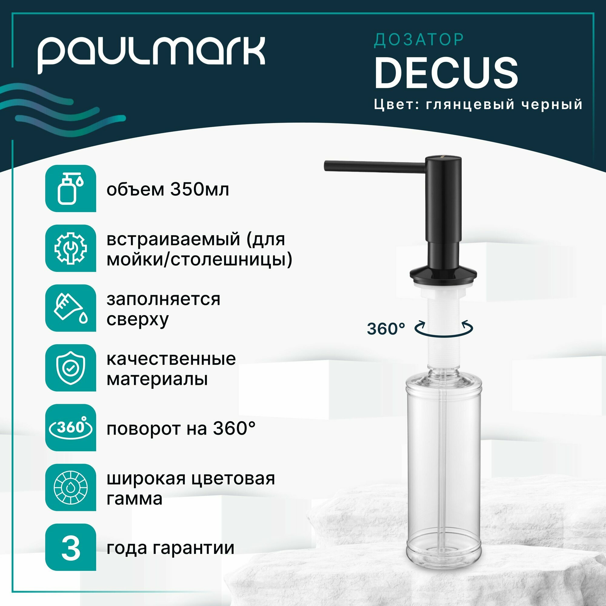 Купить Дозатор для жидкого мыла Paulmark DECUS, 350 мл, латунь / пластик, глянцевый черный, D004-GB с доставкой по всей России.
