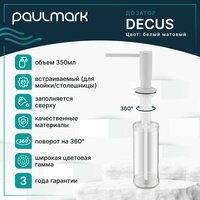 Дозатор для жидкого мыла Paulmark DECUS, 350 мл, латунь / пластик, белый матовый, D004-431: сравнение цен, характеристики, фото, актуальное наличие и цены.
