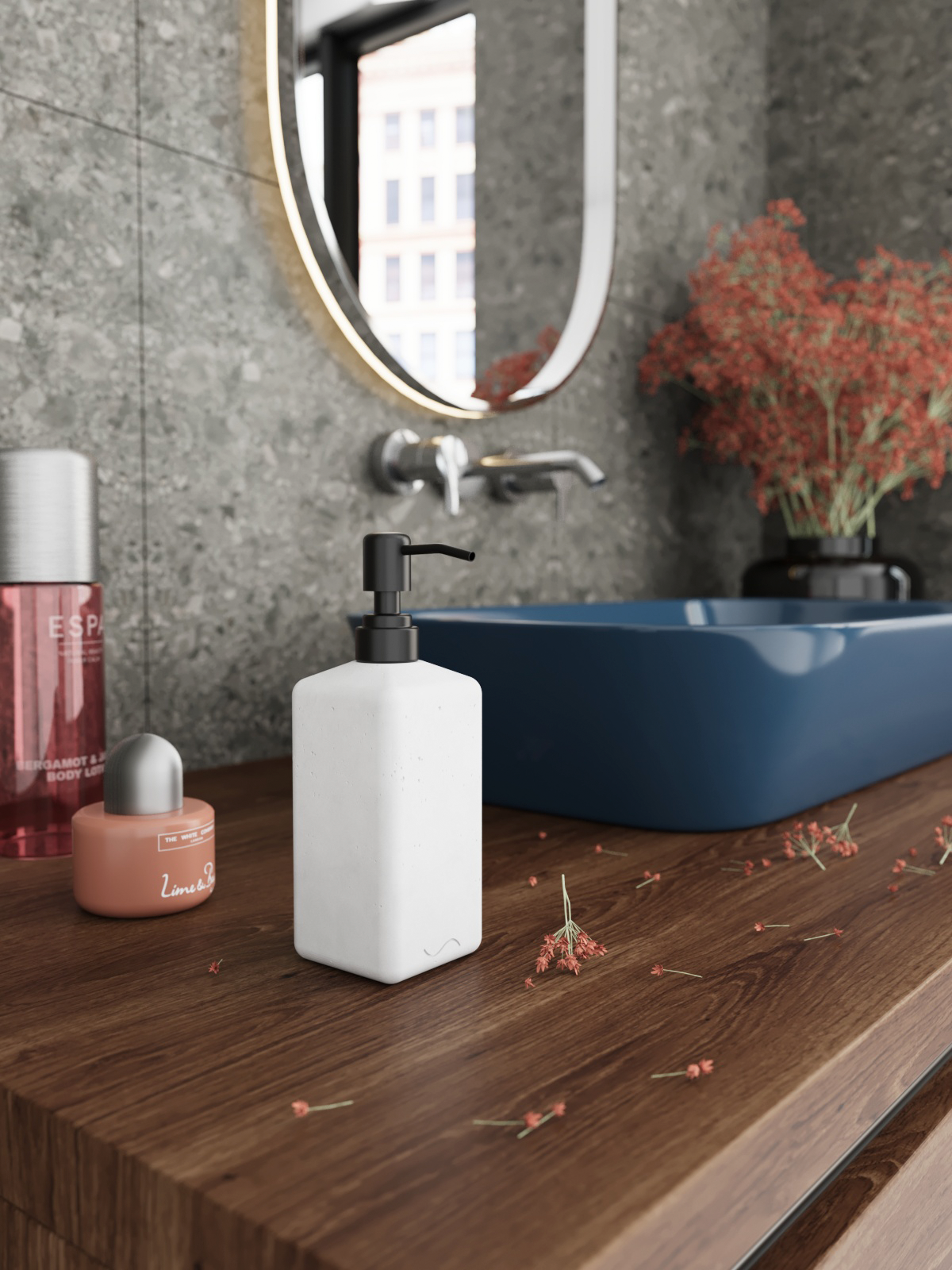 Дозатор для жидкого мыла Emily Slim с черной металлической помпой, бетон 250 мл, белый матовый: сравнение цен, характеристики, фото, актуальное наличие и цены.