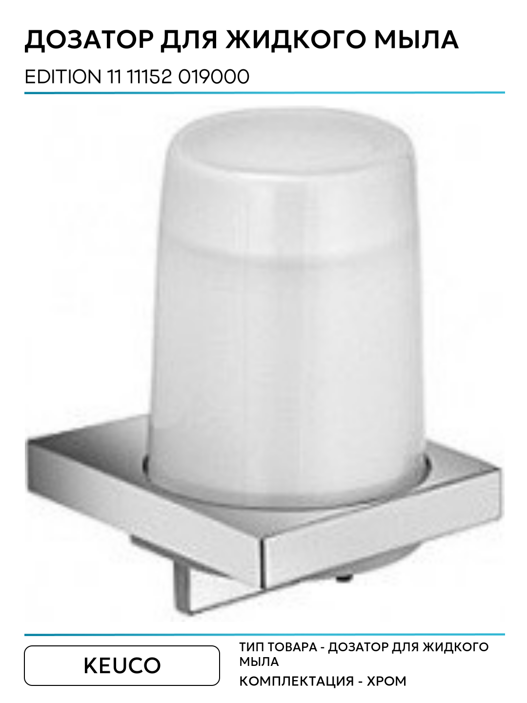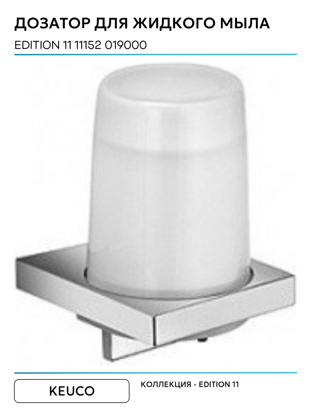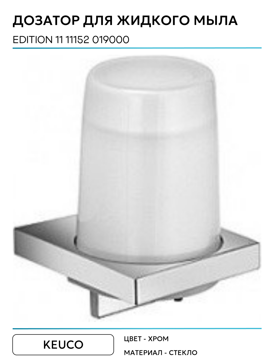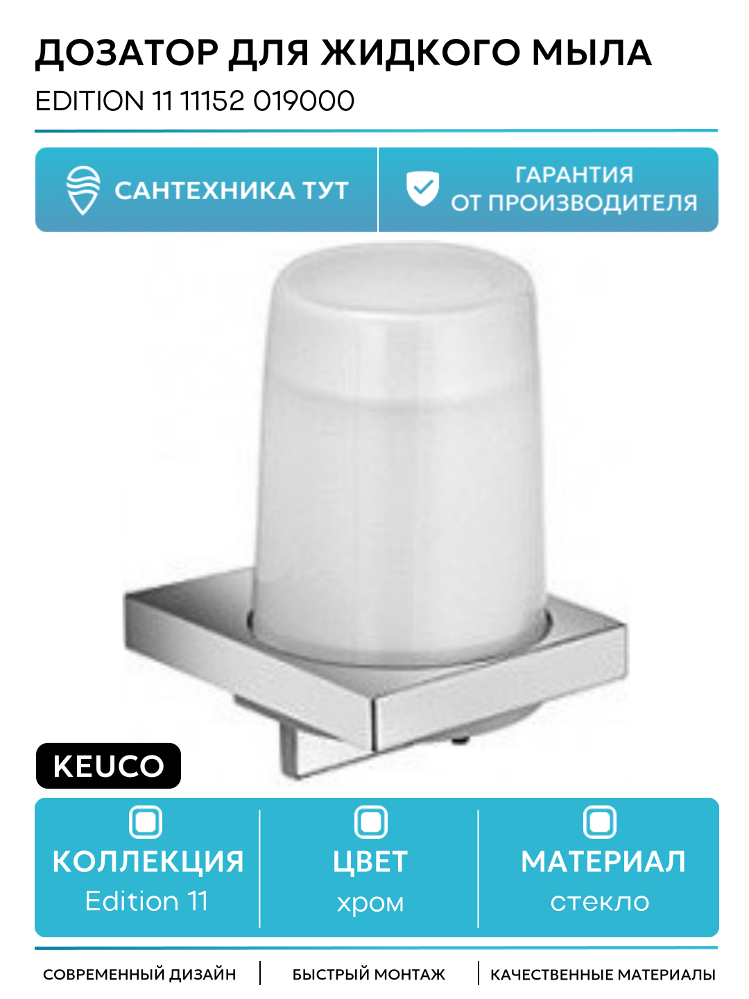 Дозатор для жидкого мыла Keuco Edition 11 11152 019000 Хром стекло на стену: сравнение цен, характеристики, фото, актуальное наличие и цены.
