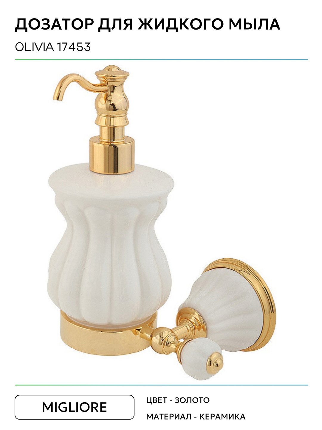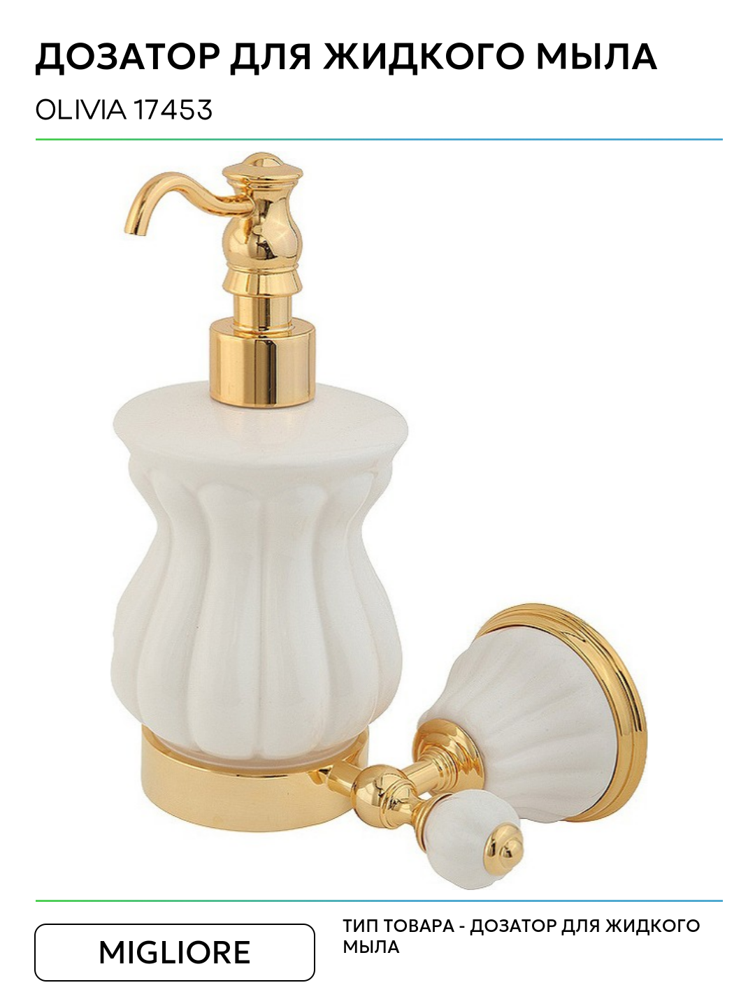 Купить Дозатор для жидкого мыла Migliore Olivia 17453 керамика на стену с доставкой по всей России. Дозатор для жидкого мыла Migliore Olivia 17453 керамика на стену: сравнение цен, характеристики, фото, актуальное наличие и цены.