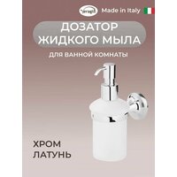 Дозатор жидкого мыла настенный - очень многофункциональный аксессуар. Вы можете повесить его над раковиной отдельно или наряду с обычной мыльницей, а также в душевой кабине, и использовать не только для жидкого мыла, но также для шампуня. Закаленное матовое стекло легко моется, а нажимной механизм имеет эргономичный дизайн. Между стеклом и латунным кольцом имеется пластиковый уплотнитель, который надежно удерживает колбу дозатора. Хромо-никелевое гальваническое покрытие обеспечивает устойчивость к царапинам и придает изделию зеркальный блеск. Материал - латунь.