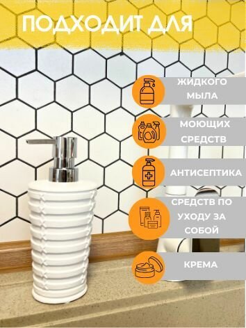 Дозатор для жидкого мыла Primanova D-15910 PALM, цвет белый, материал полимер, настольный, объем 250 мл, размер 9x9x20 см: сравнение цен, характеристики, фото, актуальное наличие и цены.