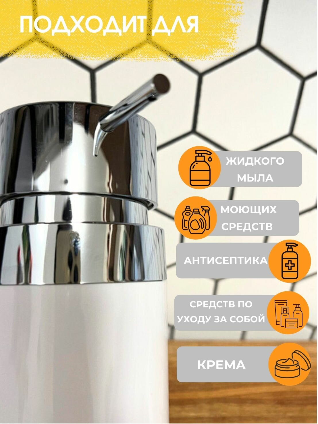 Дозатор для жидкого мыла Primanova M-E31-01 LENOX, цвет белый, материал пластик, настольный, объем 250 мл, размер 10×6,5×18,6 см: сравнение цен, характеристики, фото, актуальное наличие и цены.