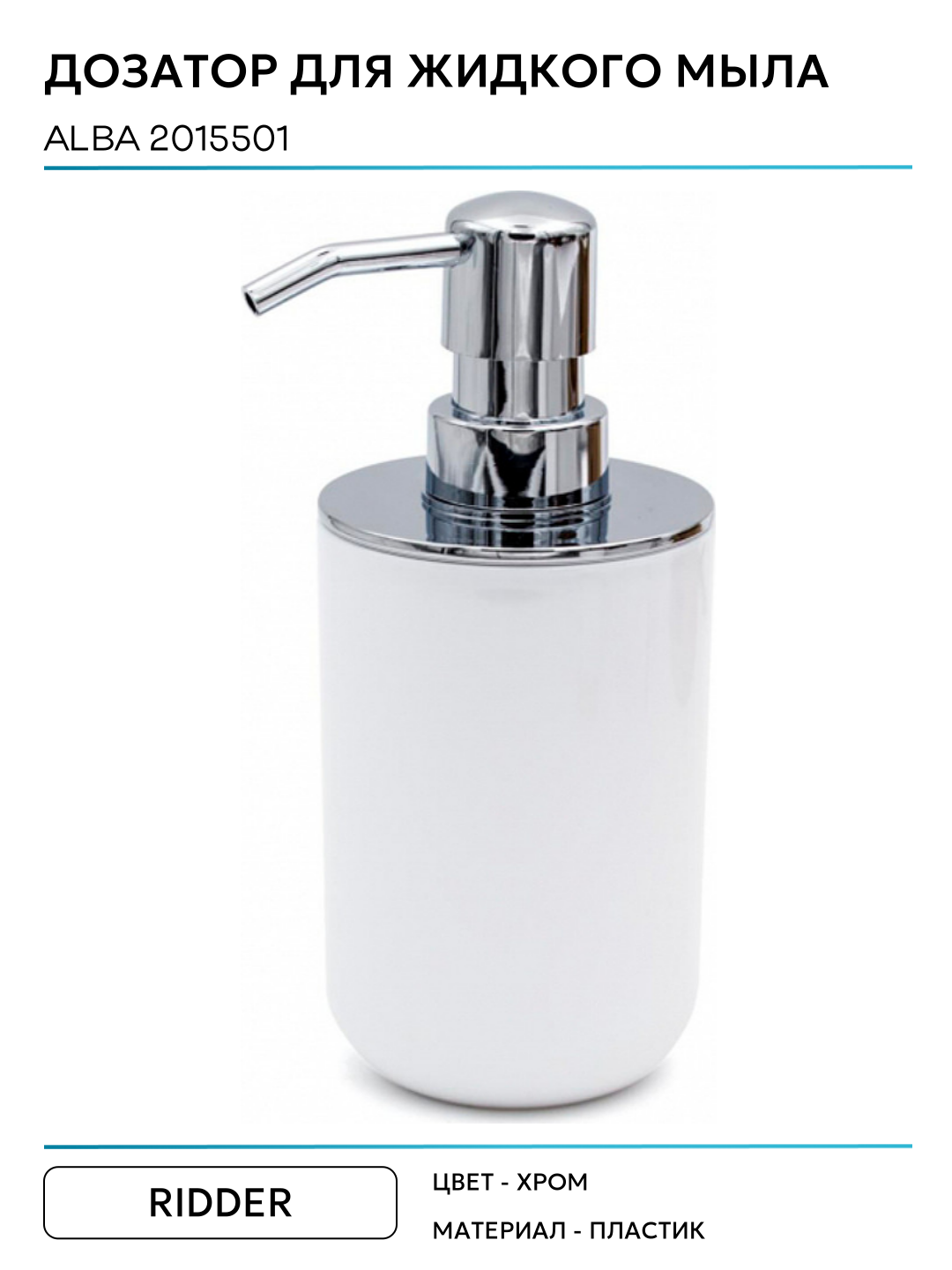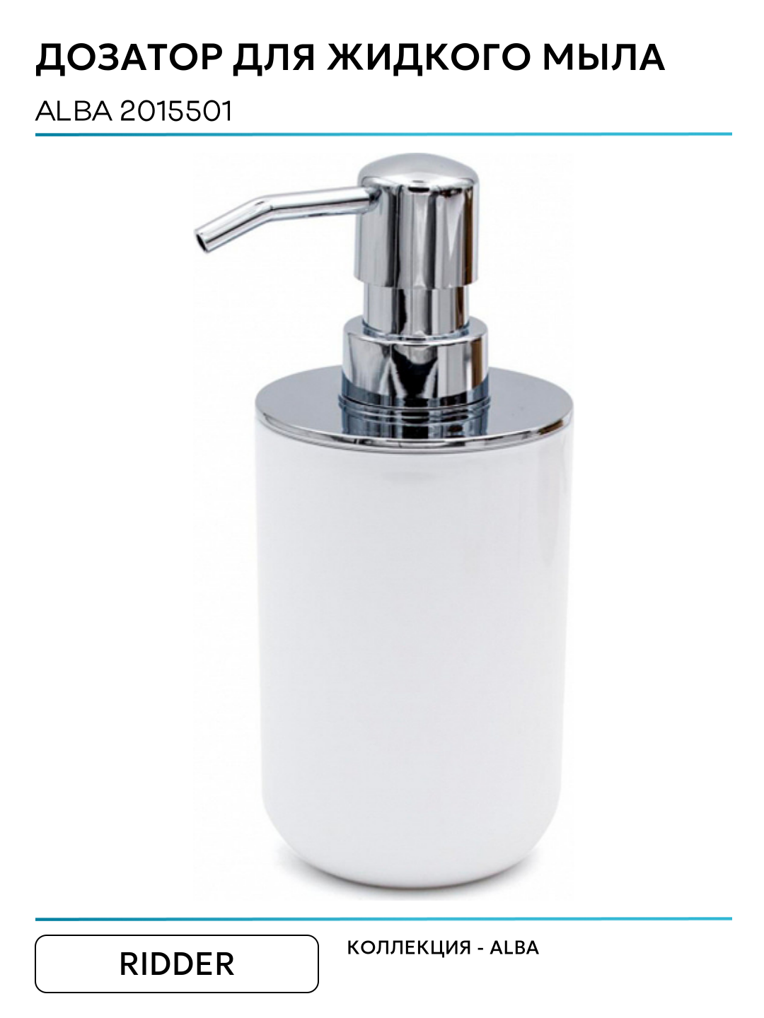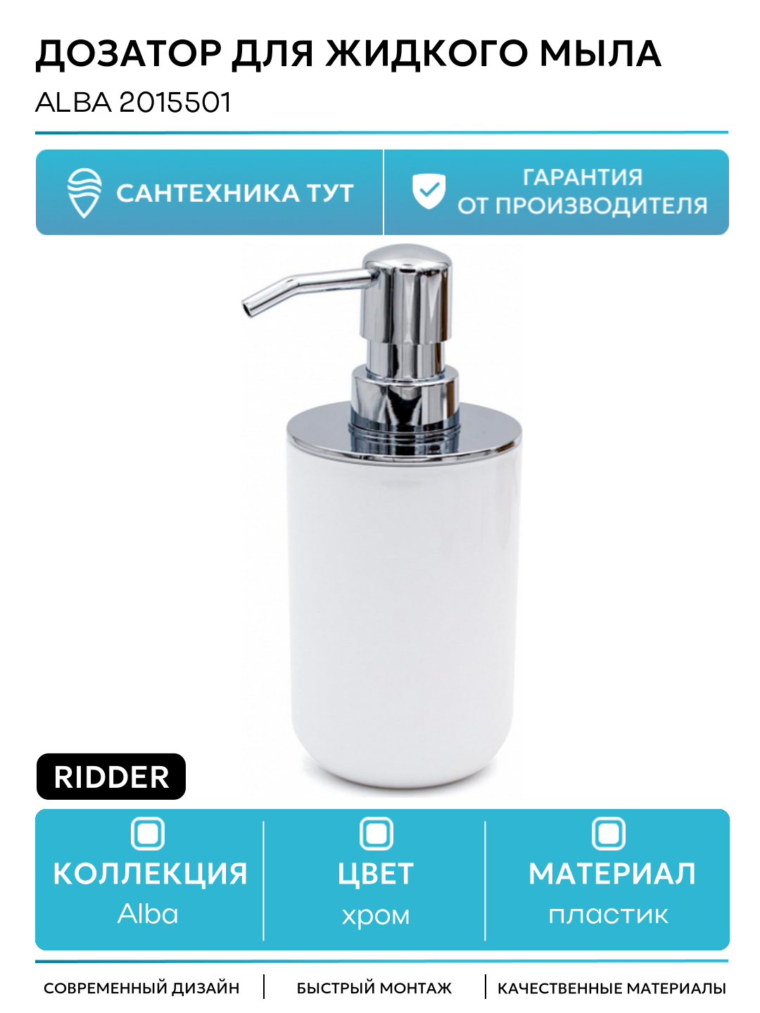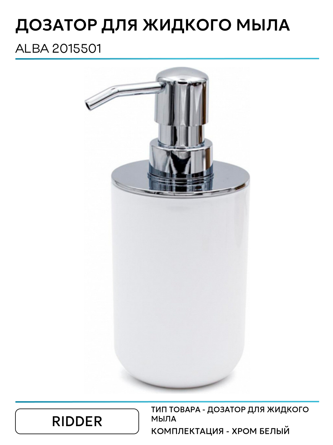 Купить Дозатор для жидкого мыла Ridder Alba 2015501 Хром Белый с доставкой по всей России. Дозатор для жидкого мыла Ridder Alba 2015501 Хром Белый: сравнение цен, характеристики, фото, актуальное наличие и цены.