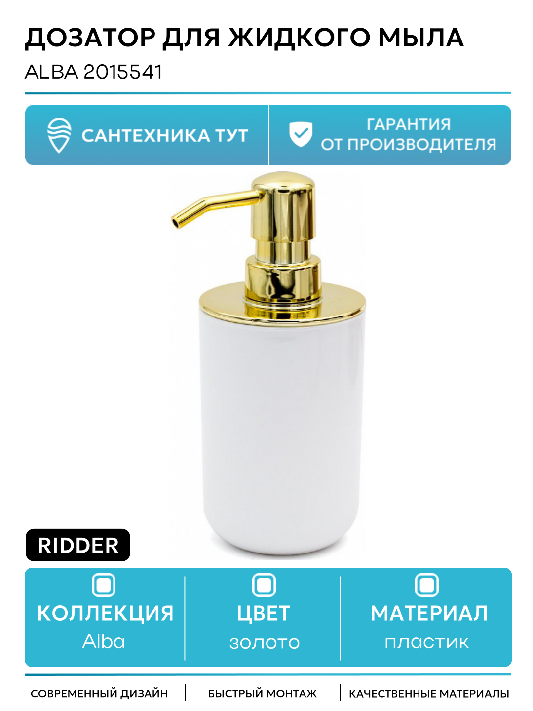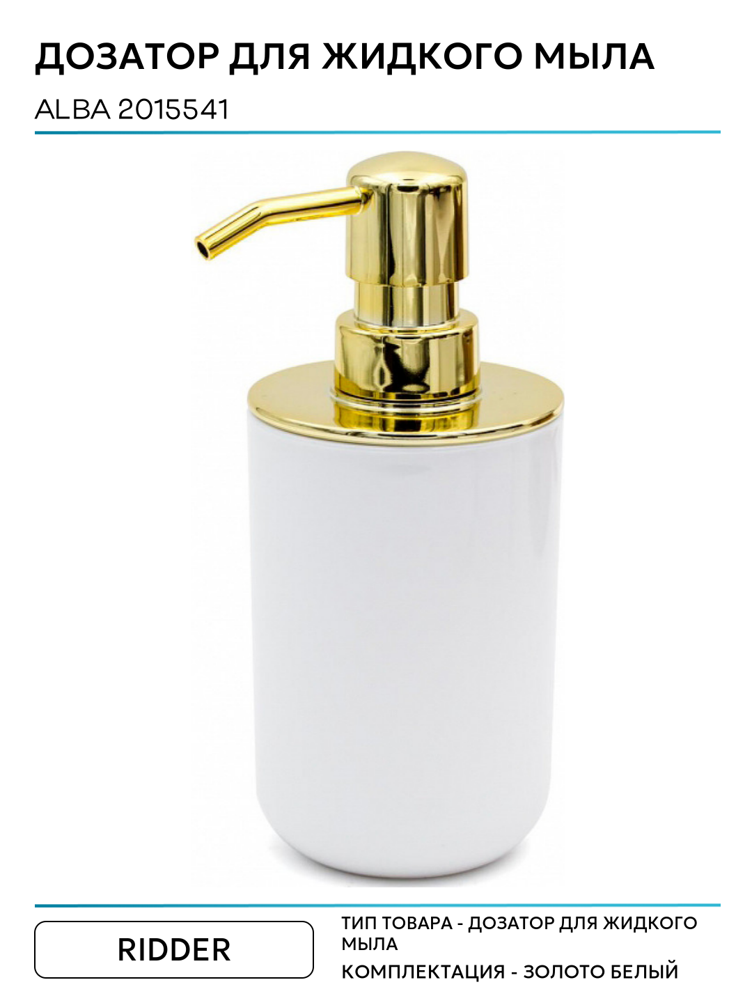 Купить Дозатор для жидкого мыла Ridder Alba 2015541 Золото Белый с доставкой по всей России. Дозатор для жидкого мыла Ridder Alba 2015541 Золото Белый: сравнение цен, характеристики, фото, актуальное наличие и цены.