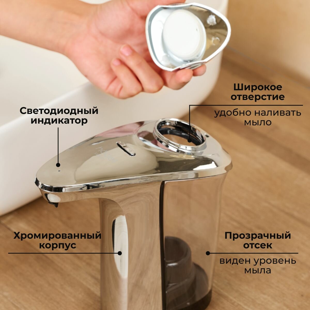 Купить Дозатор для жидкого мыла сенсорный, 5 уровней мыла, хромированный корпус, 500 мл с доставкой по всей России. Дозатор для жидкого мыла сенсорный, 5 уровней мыла, хромированный корпус, 500 мл: сравнение цен, характеристики, фото, актуальное наличие и цены.