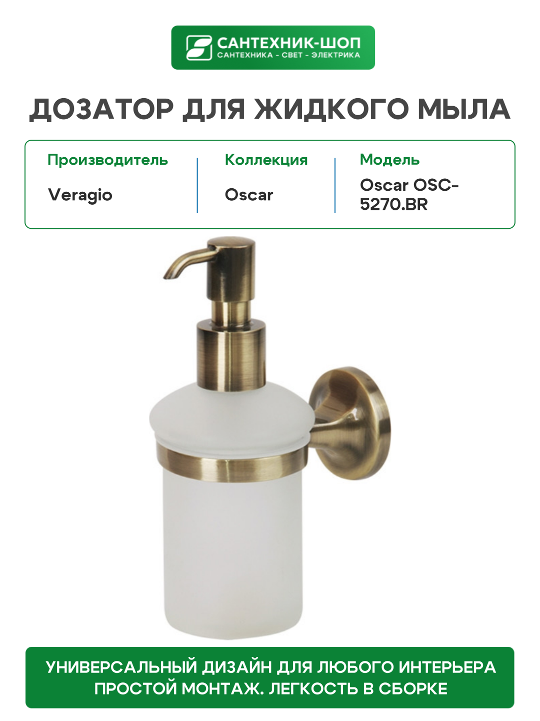 Дозатор для жидкого мыла Veragio Oscar OSC-5270. BR Бронза стекло на стену: сравнение цен, характеристики, фото, актуальное наличие и цены.