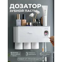дозатор для зубной пасты, держатель для зубных щеток - 6 шт., стакан для полоскания рта - 2 шт., ящик для хранения, полка для ванных принадлежностей, клейкое крепление, упаковка